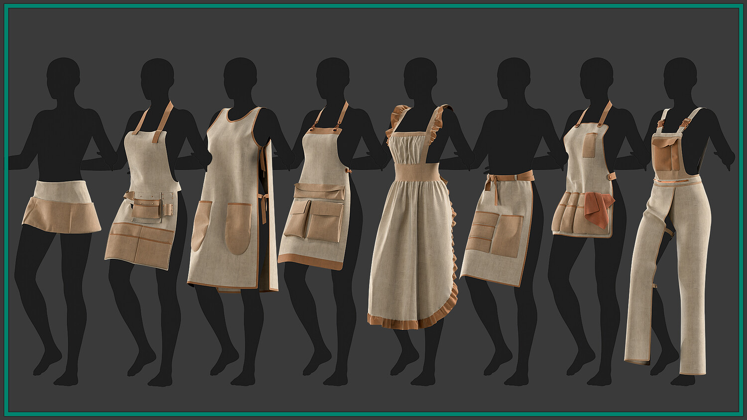 This product contains 8 Female Apron and 8 Files. In each Files, there are:
