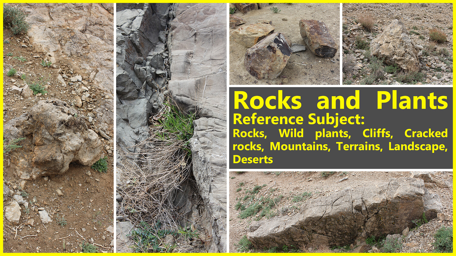 Rocks, Wild plants, Cliffs, Cracked rocks, Mountains, Terrains, Landscape, Desert, ....