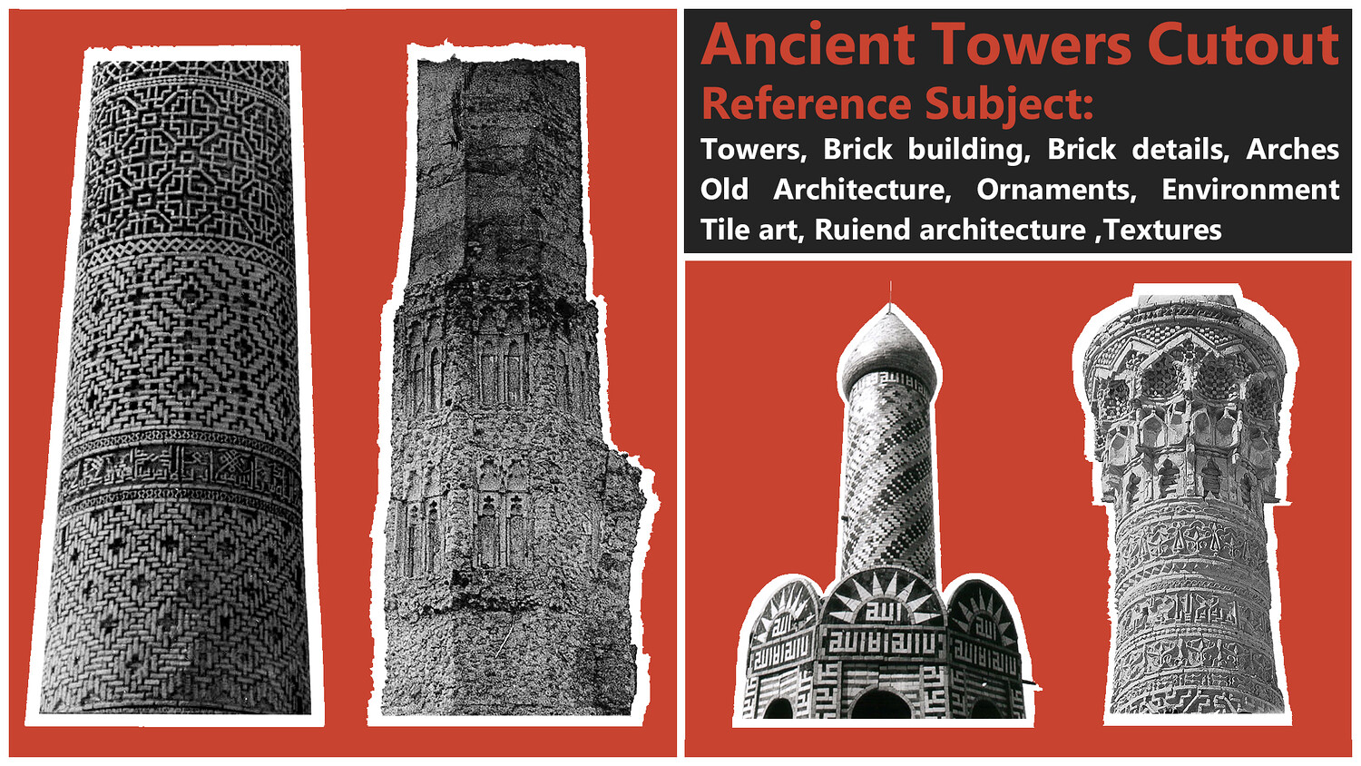 π΅ Get over 100 high-resolution cutouts (PNG) of ancient towers + free image references. This set includes various buildings, textures, and exquisite details to enhance your creative projects. You can use these elements as references for 3D modeling, concept art, environment art, photobashing, matte painting, and other CG art visualizations.