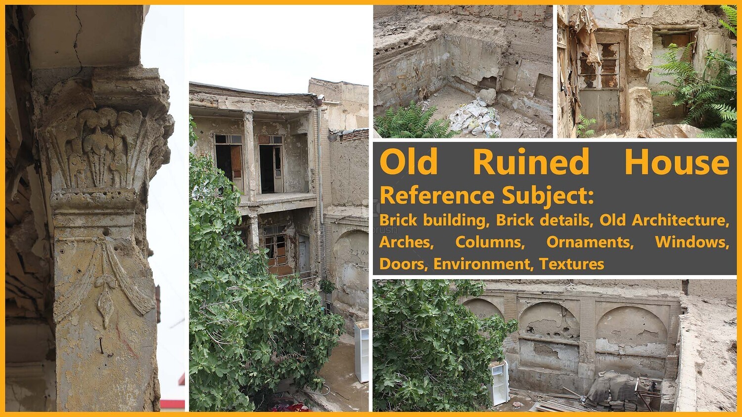 π΅ Get over 220 high-resolution photos of Old Ruined House. This set includes various textures and exquisite details to enhance your creative projects. You can use these elements as references for 3D modeling, concept art, environment art, photobashing, matte painting, and other CG art visualizations.