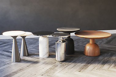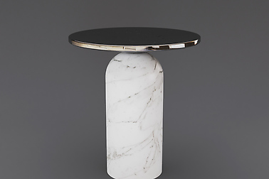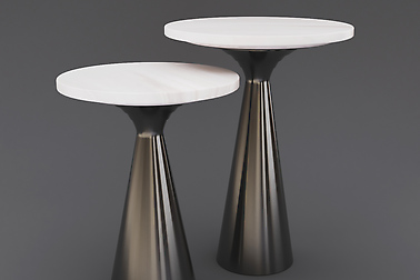 1-1 . Macbeth Hemlock Black Wood Side Table Dim: 47x47x50 cm 1-2 . Macbeth Hemlock Wood Coffee Table Dim: 70x70x42 cm 2 . Martini Side Table with White Marble Base Dim: 40x40x50 cm 3-1 . Nina Rose Quartz Side Tables Dim: 33x33x43 cm 3-2 . Nina Rose Quartz Side Tables Dim: 38x38x51 cm 4 . Cheval Polished Silver Side Table Dim: 32x32x48 cm