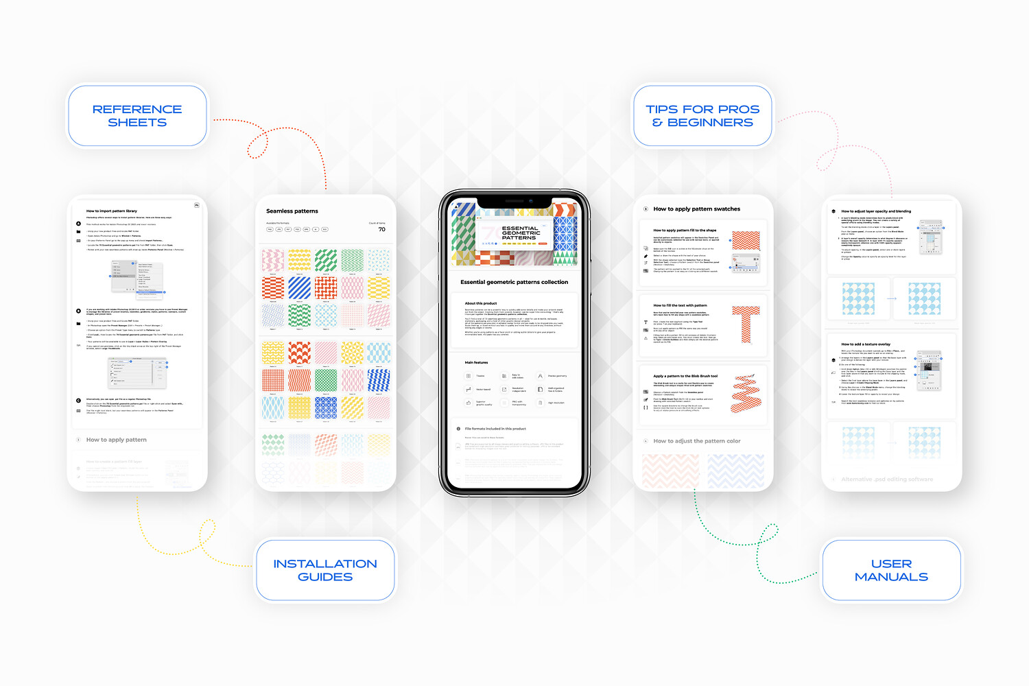 - PDF User Manuals: This collection includes comprehensive user manuals tailored for both Adobe Photoshop and Adobe Illustrator users. These manuals are designed to help you make the most out of the patterns, offering installation guides and professional tips and tricks for both beginners and experienced designers.