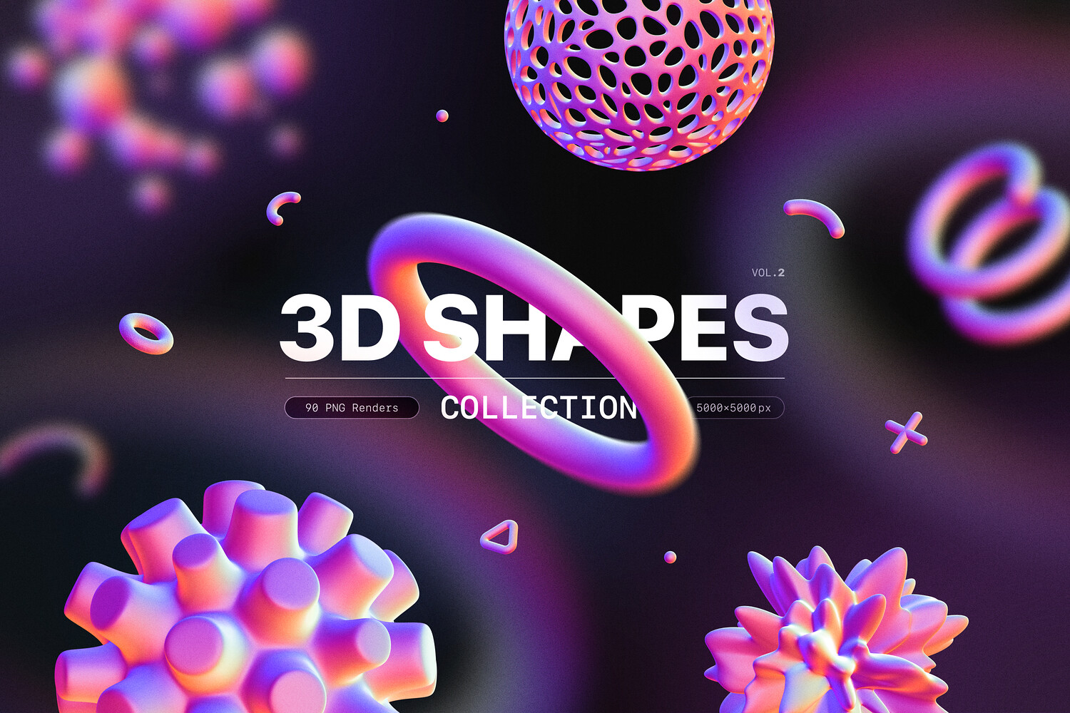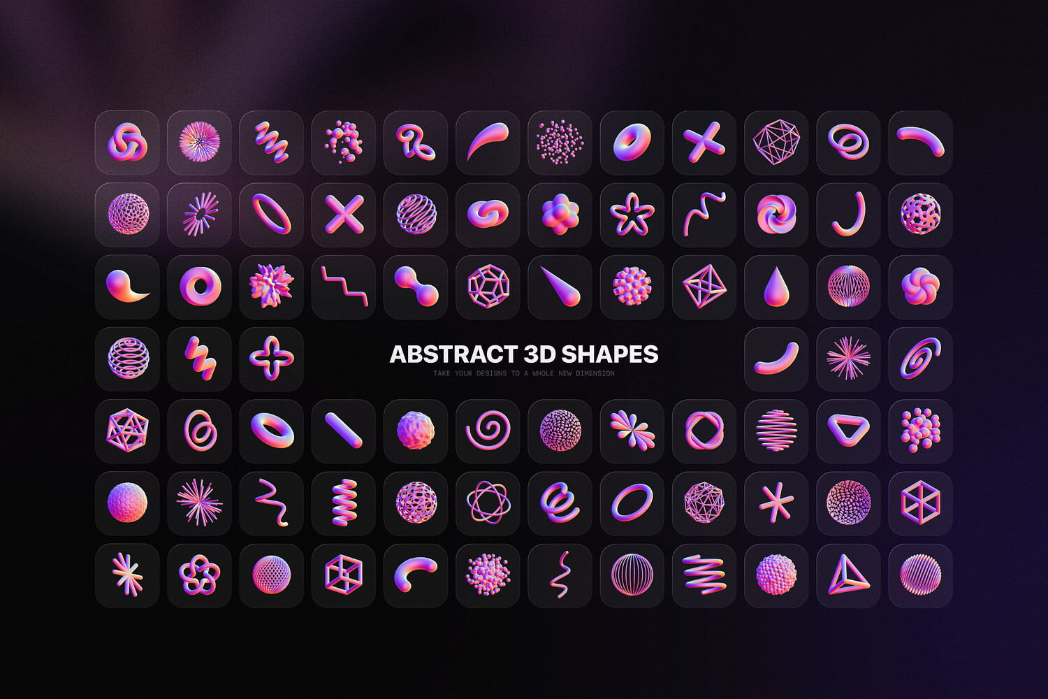 Introducing the 3D Shapes Collection, a visually stunning compilation of abstract 3D elements, designed to infuse your creative projects with a contemporary, dynamic aesthetic and unique blend of color and form.