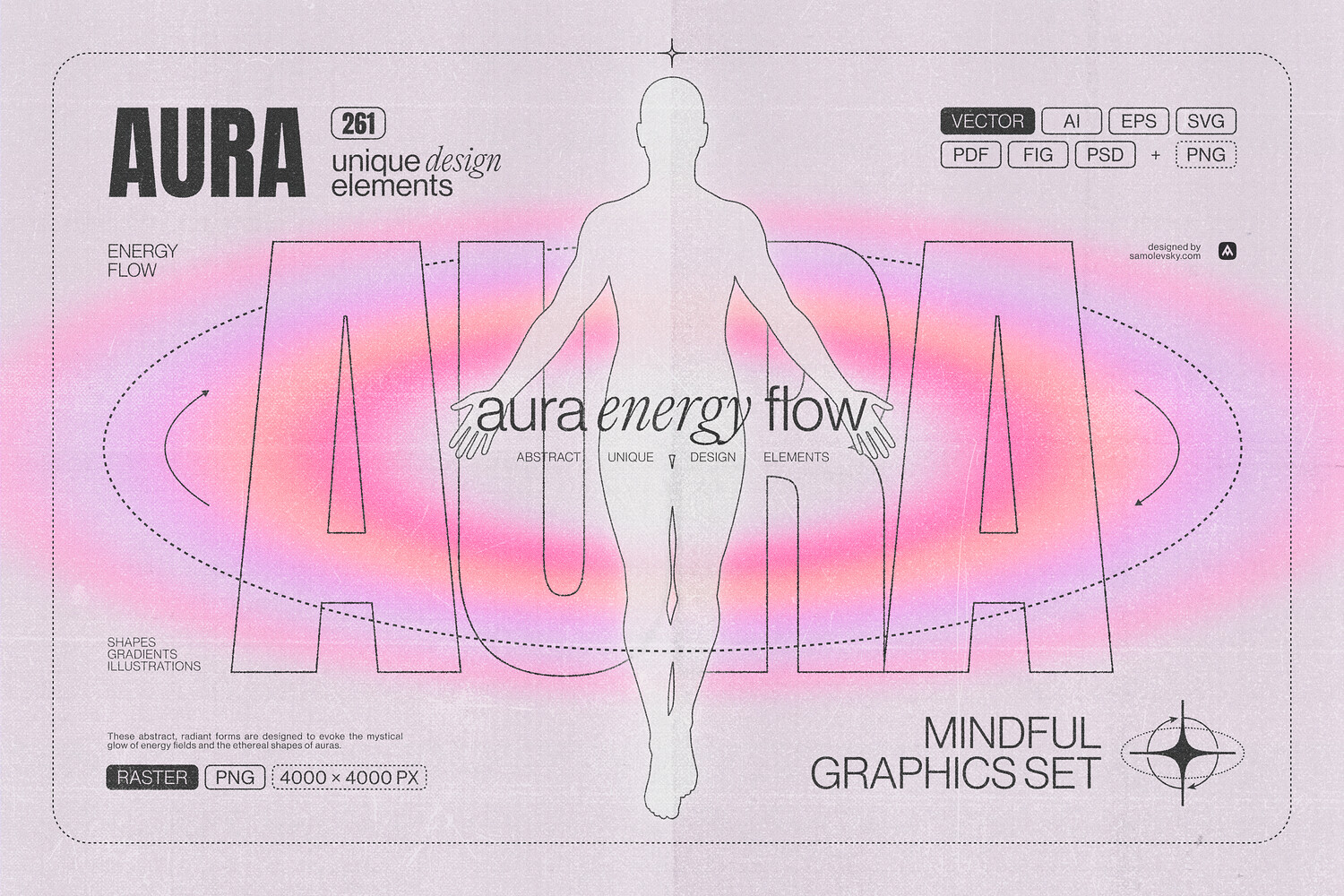 Step into a world of harmony, light, and spiritual balance with the Aura Energy Flow Graphics Pack — a curated collection of 261 mystical design elements crafted to bring serenity, energy, and soulful beauty into your creative projects. Perfect for spiritual branding, mindful quotes, wellness graphics, holistic product design, posters, social media, and more.