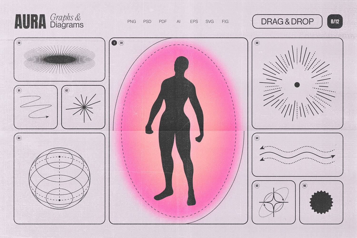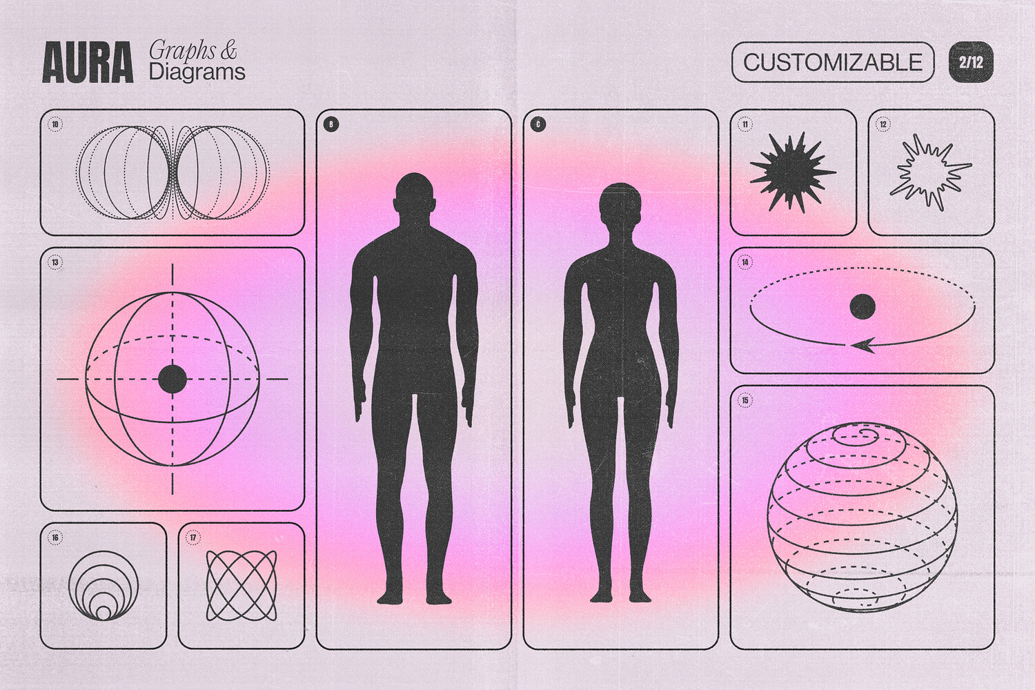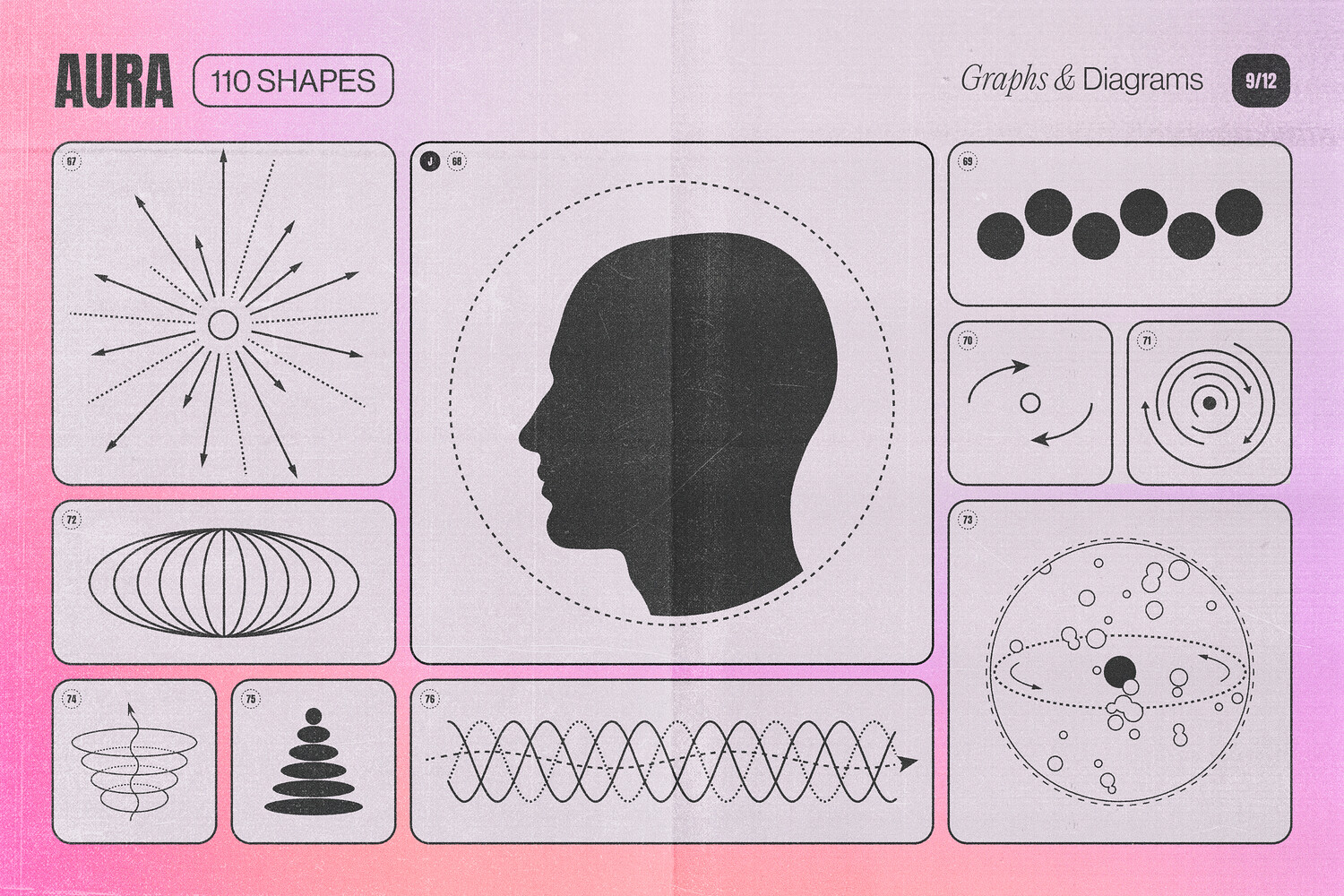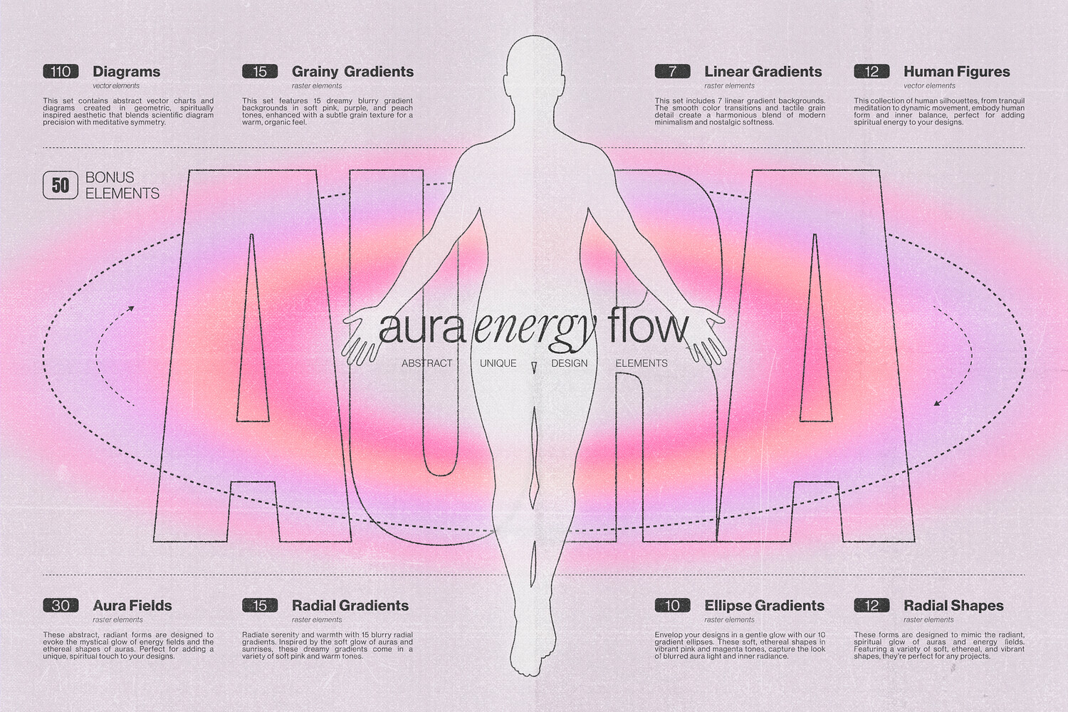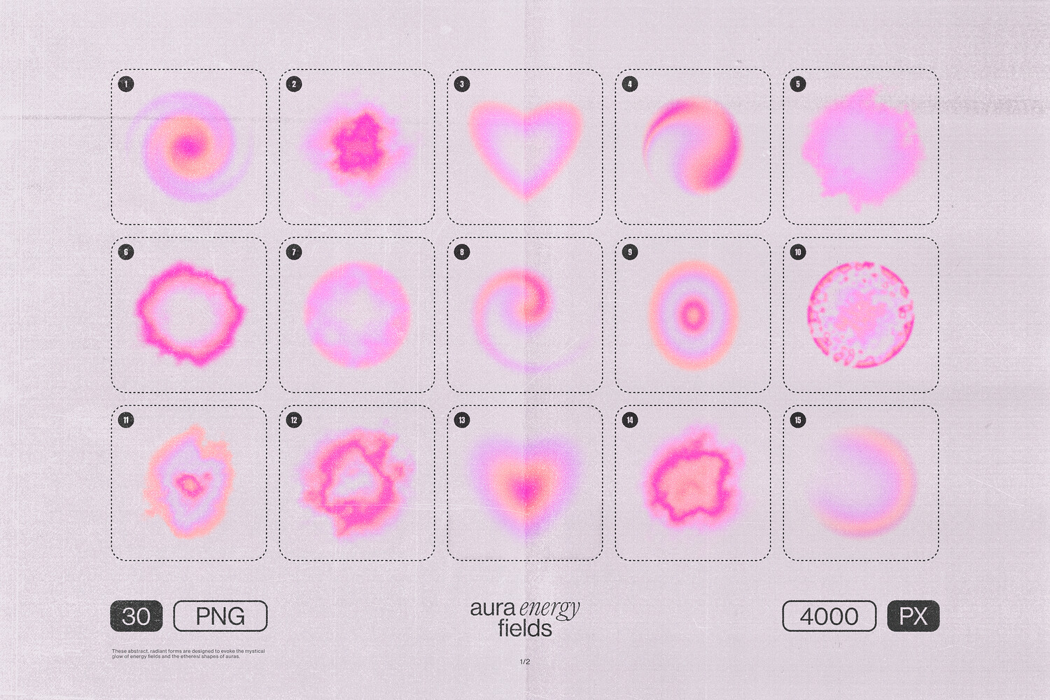 - Envelop your designs in a gentle glow with these soft, ethereal shapes. Vibrant pink, peach and magenta tones capture the look of blurred aura light and inner radiance.