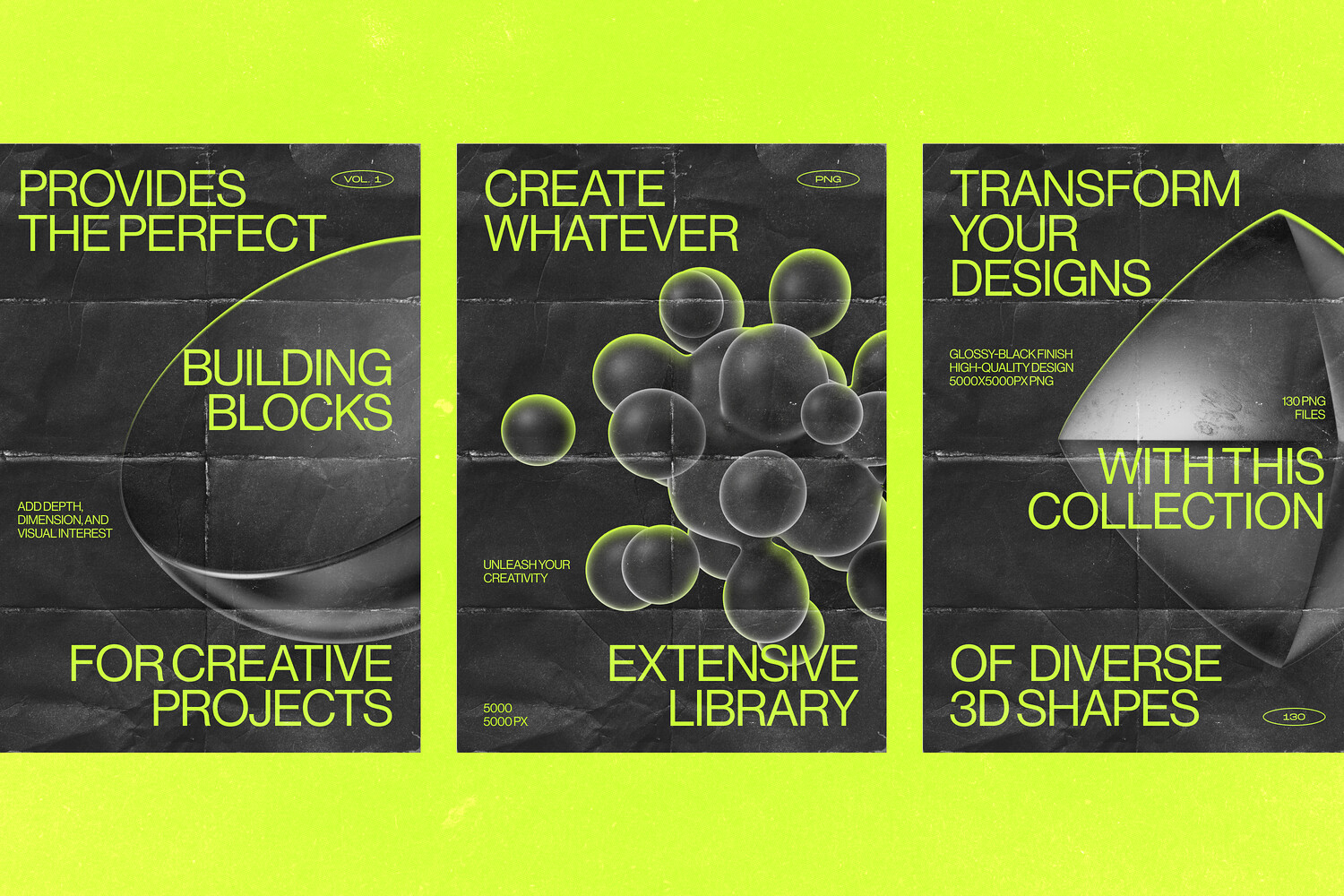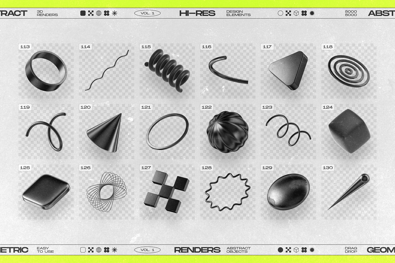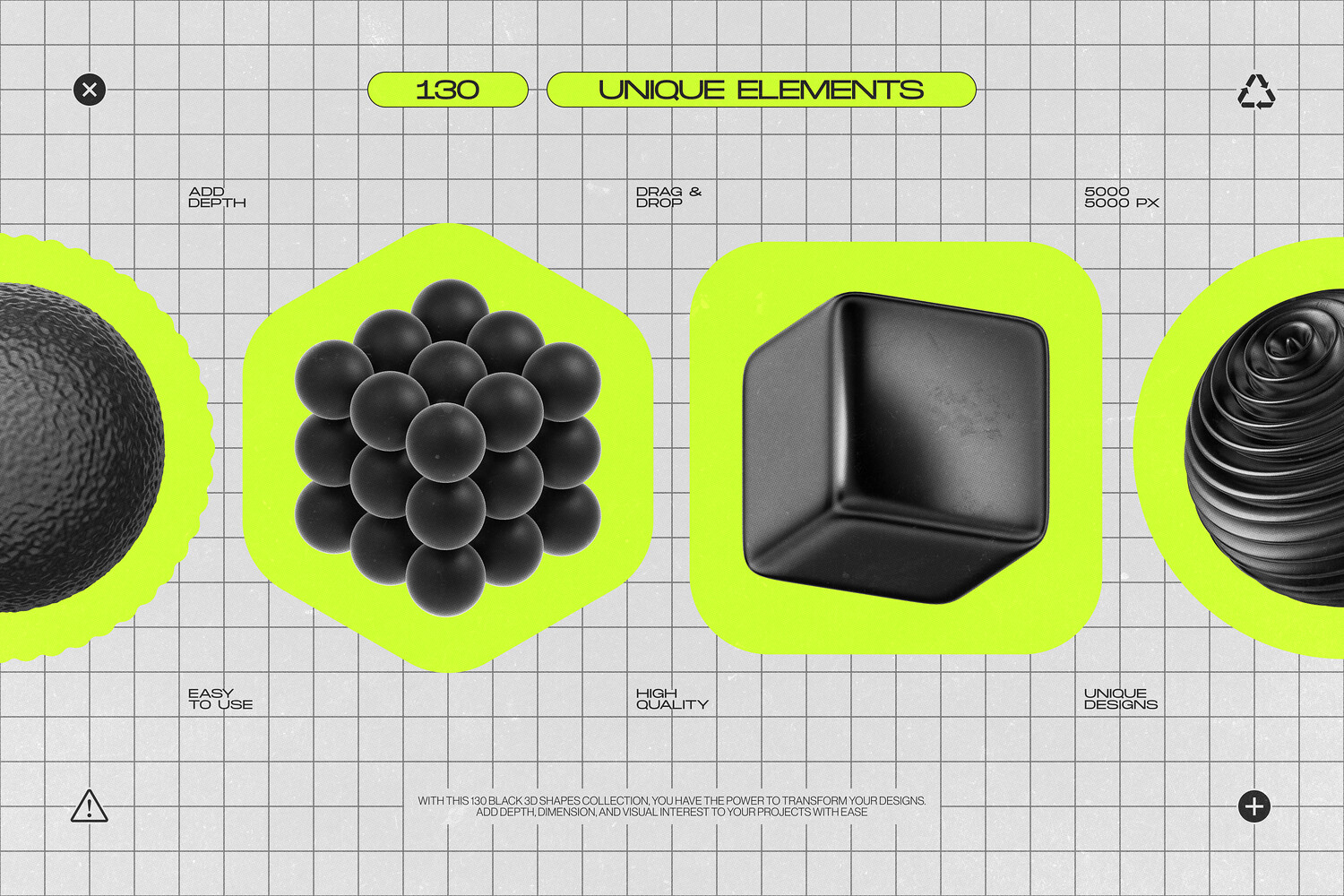 - 130 Unique Elements: A comprehensive selection of 3D shapes perfect for any creative project.