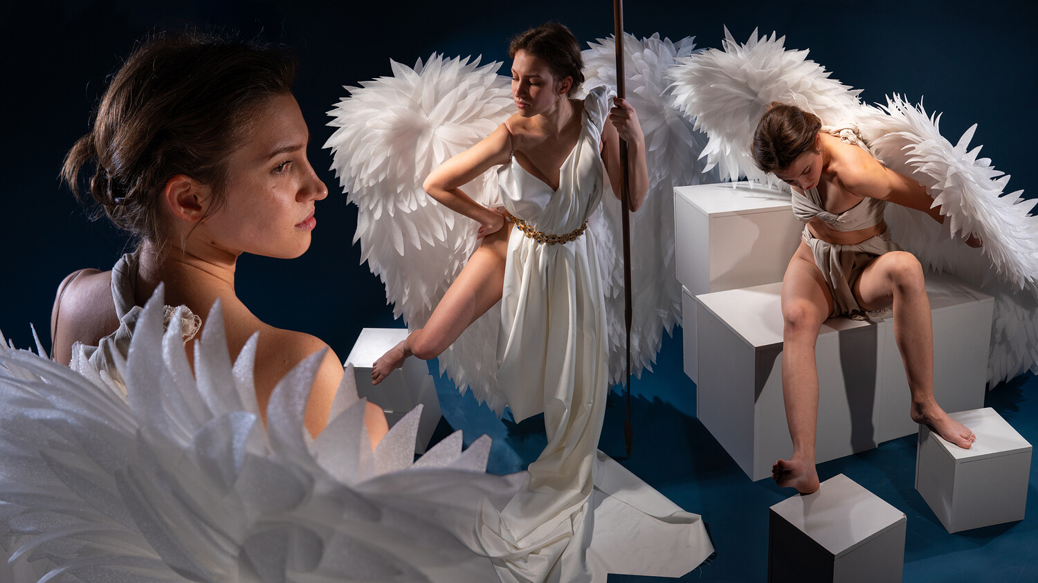 This digital reference pack features high-resolution images of a female angel designed for artists seeking dynamic and inspiring visual material. The set includes two distinct costume variations. Each reference is captured under different lighting conditions, ranging from soft ethereal glow to dramatic directional light for enhanced depth and shadow study. The poses vary between serene, graceful stances and powerful, action-oriented movements to support diverse artistic needs. Multiple perspective views are provided, allowing artists to accurately study anatomy, wings, fabric flow, and spatial positioning from different angles.