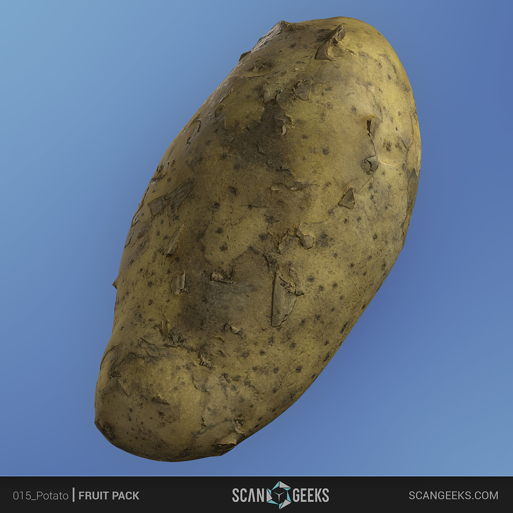 This product consists in a Potato 3D model based on photoscans, one of the assets that you can find in our Fruit/Vegetable Pack of 12.