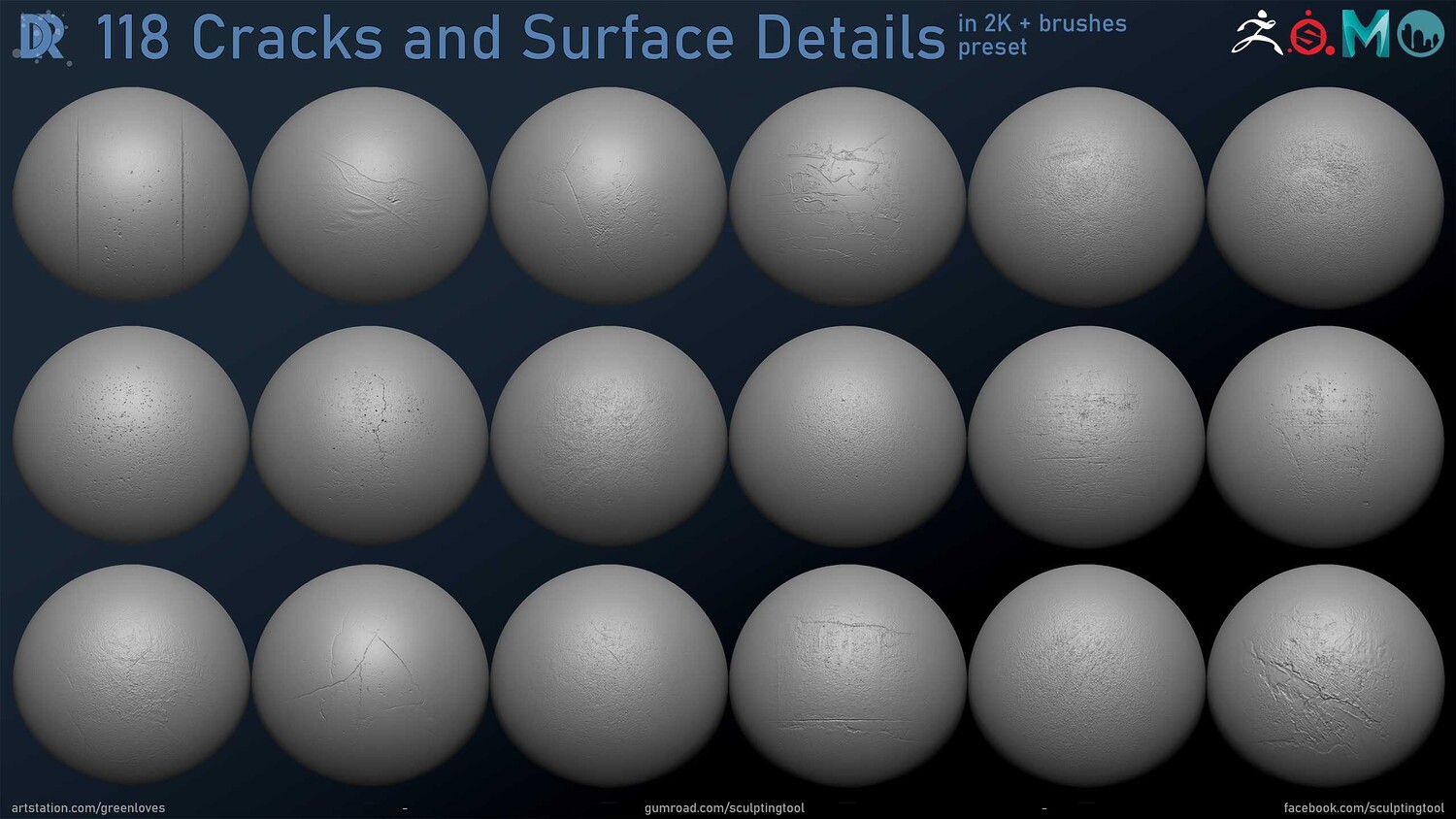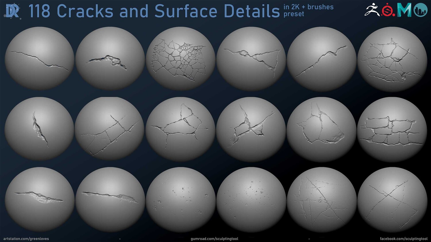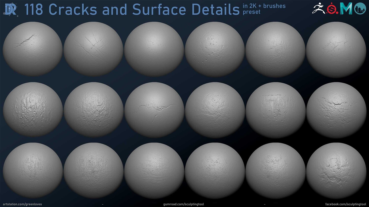 118 various alpha masks and brushes presets to creating cracks and various surface detials like concrete, stone, noise, imperfection , holes and more