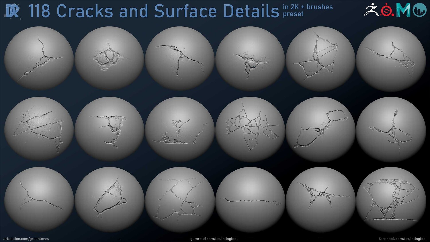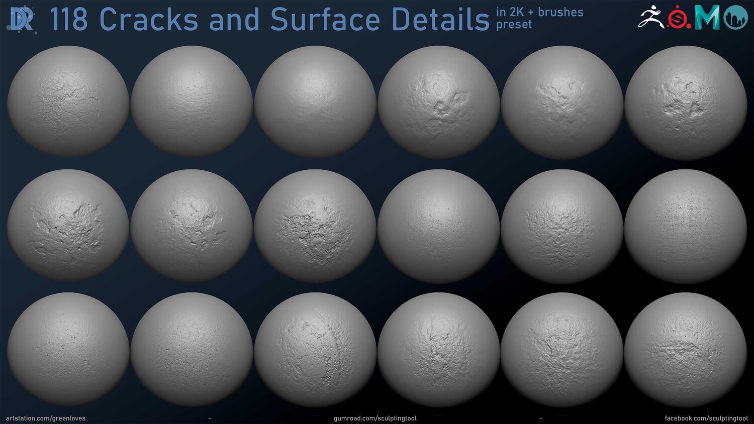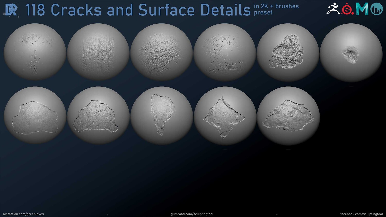 118 various alpha masks and brushes presets to creating cracks and various surface detials like concrete, stone, noise, imperfection , holes and more