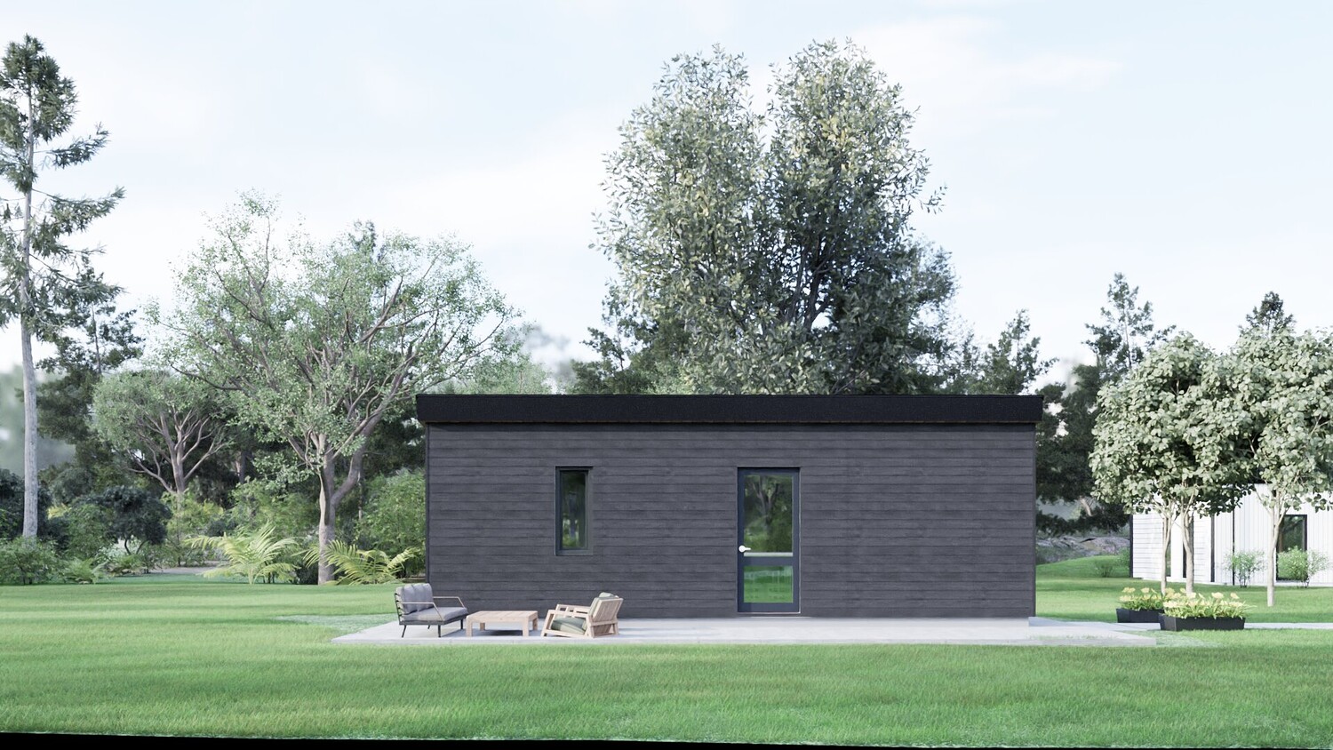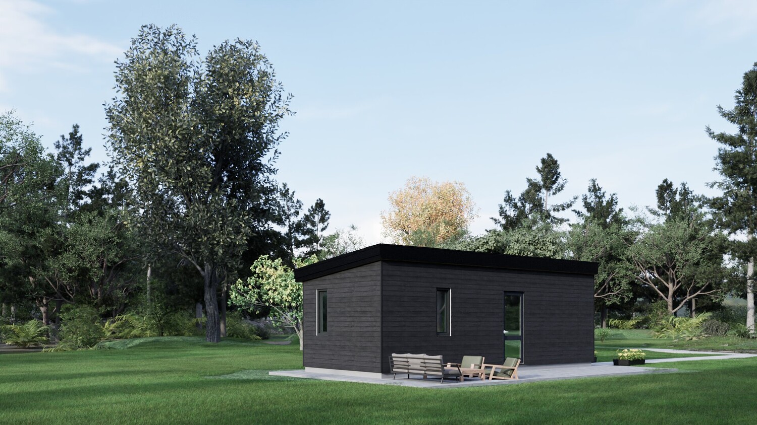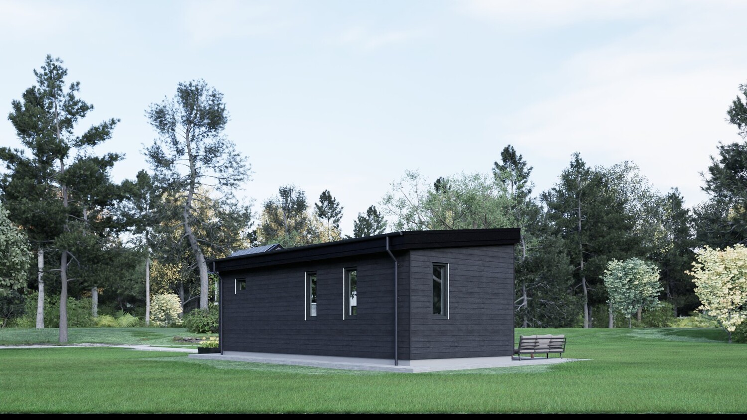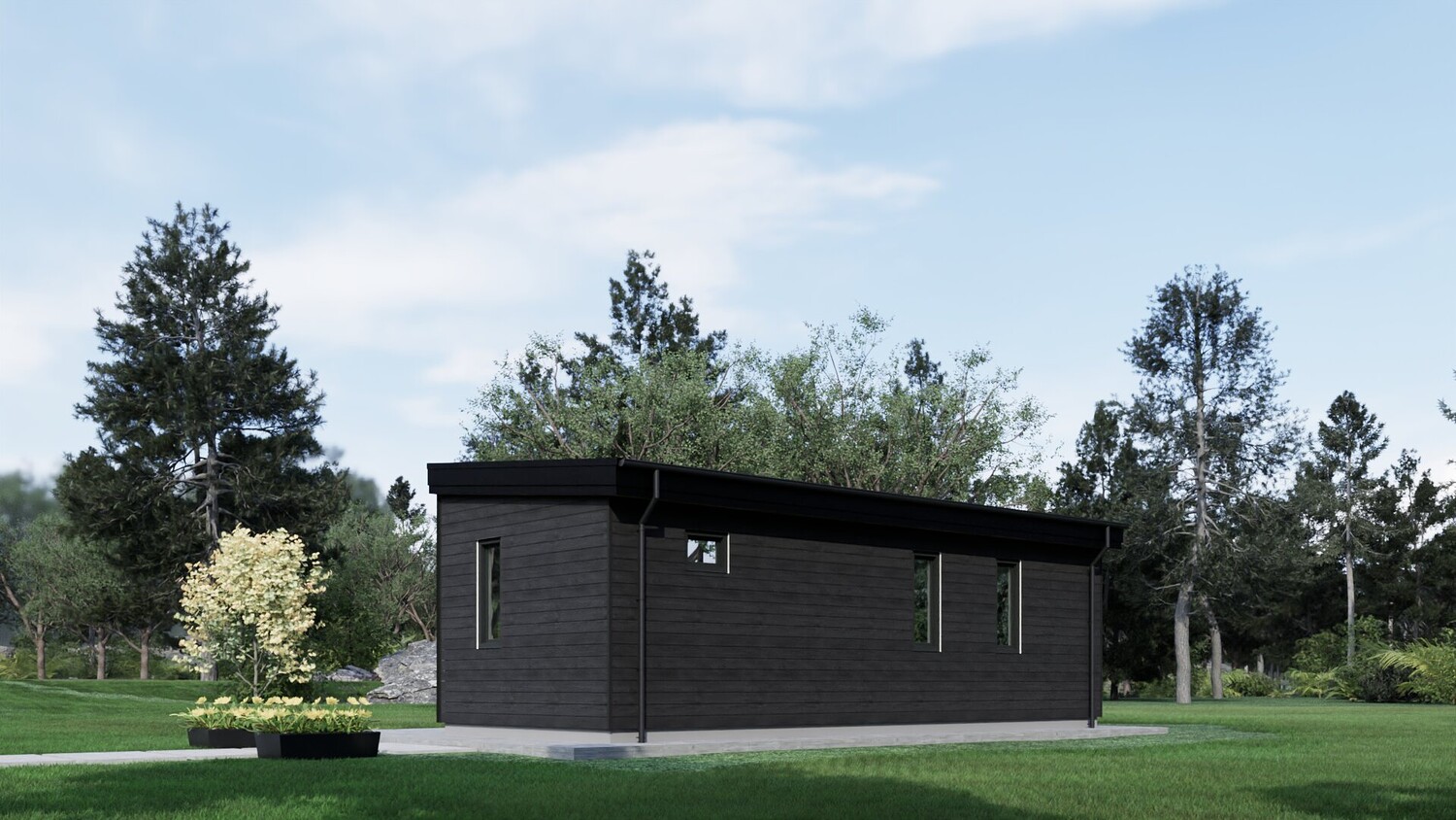 This model measures 9600 x 3890 mm and is designed for four people. The usable area is 30 m2. It is designed for seasonal living. I have developed a whole series of small mobile homes for camping parks. There are three well-thought-out layouts in these sizes. Model No. 3 is shown here. This set includes a detailed 3D model, floor plan and facades. The house model is designed for factory production and transportation to the installation site. You can build it yourself by ordering production drawings from me, or you can order a complete house kit from us. We manufacture ready-made house kits and deliver them throughout Europe.