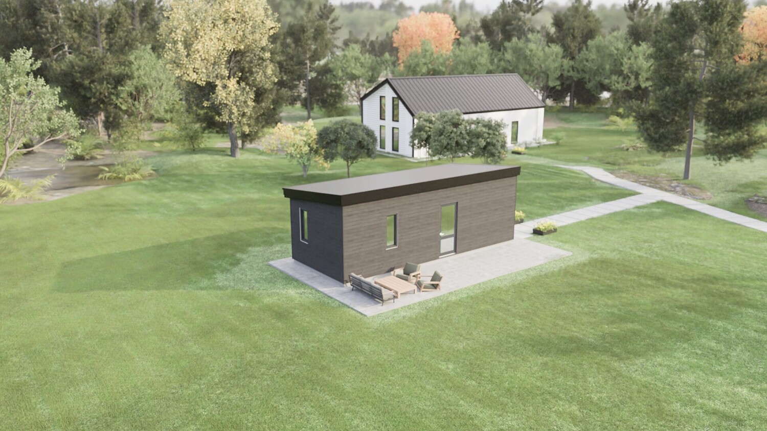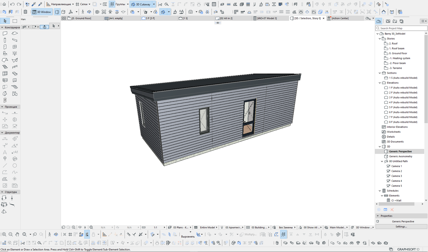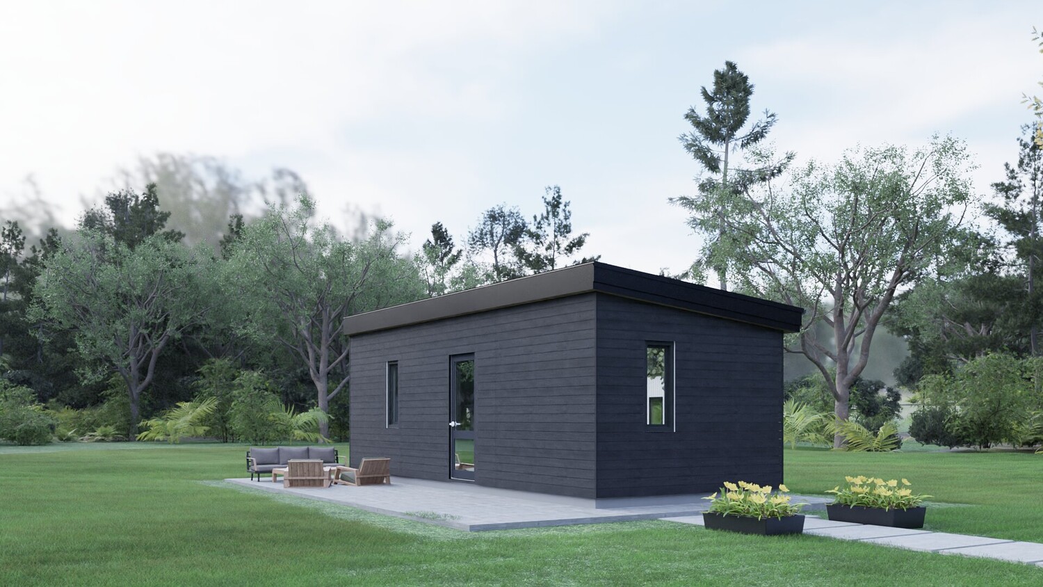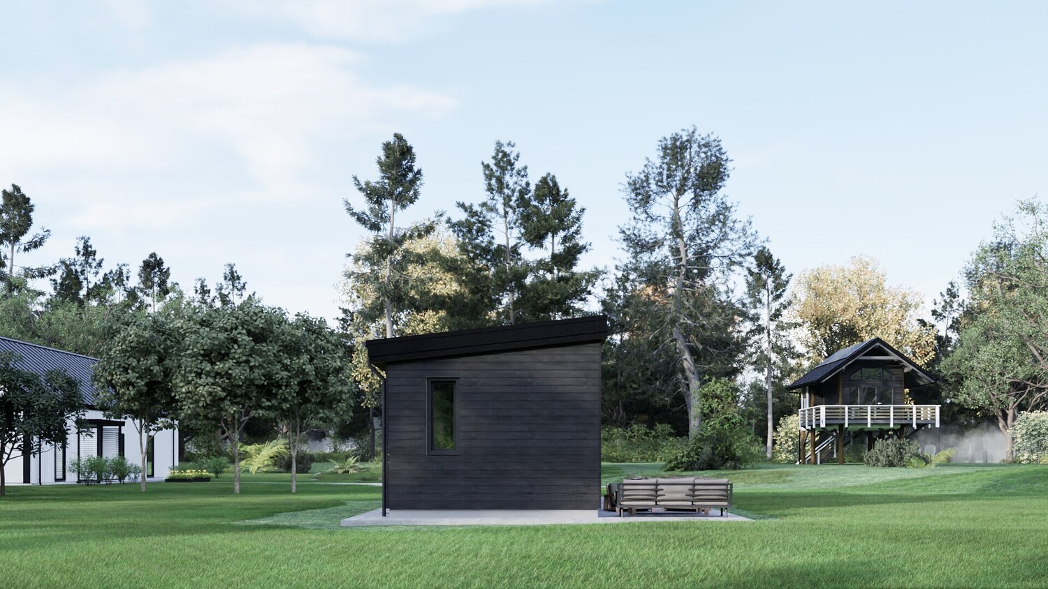 This model measures 9600 x 3890 mm and is designed for four people. The usable area is 30 m2. It is designed for seasonal living. I have developed a whole series of small mobile homes for camping parks. There are three well-thought-out layouts in these sizes. Model No. 3 is shown here. This set includes a detailed 3D model, floor plan and facades. The house model is designed for factory production and transportation to the installation site. You can build it yourself by ordering production drawings from me, or you can order a complete house kit from us. We manufacture ready-made house kits and deliver them throughout Europe.