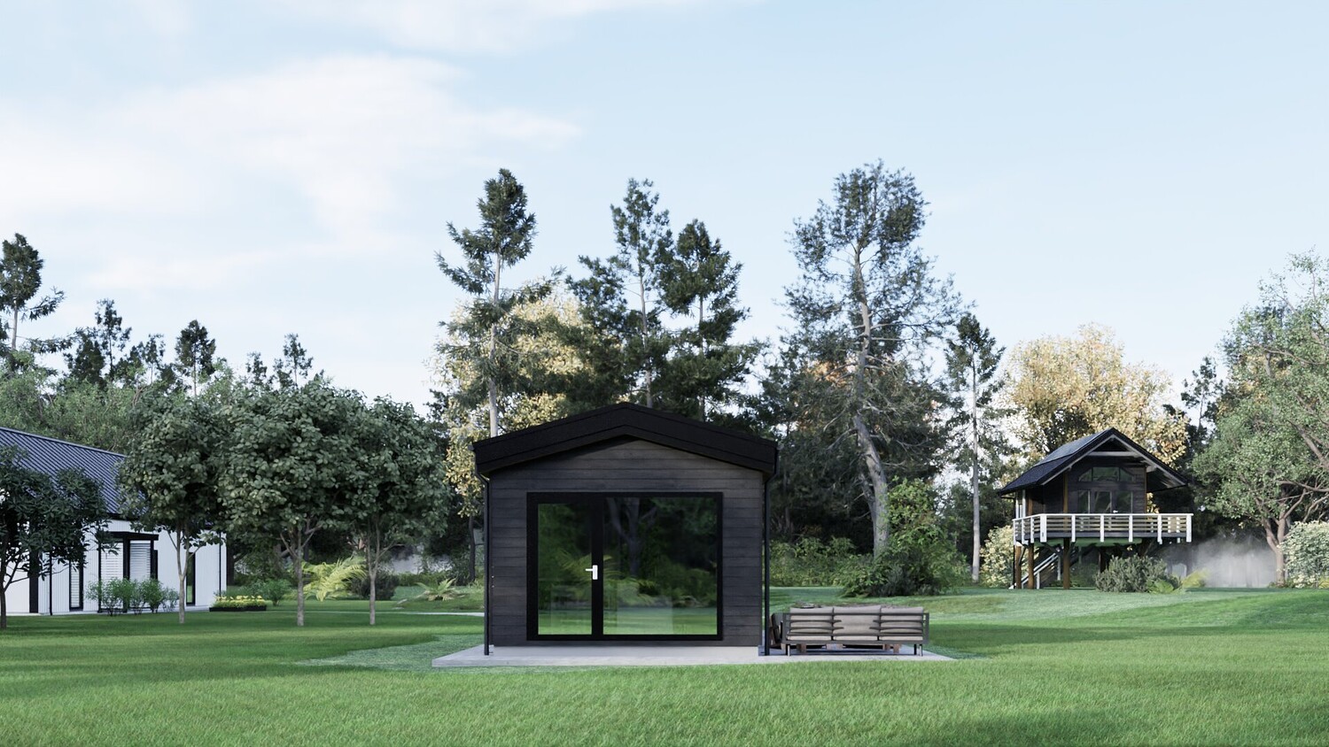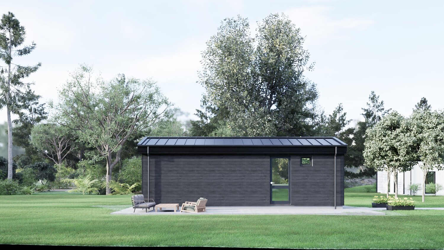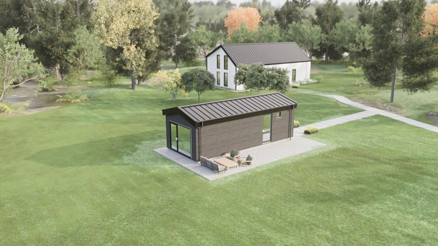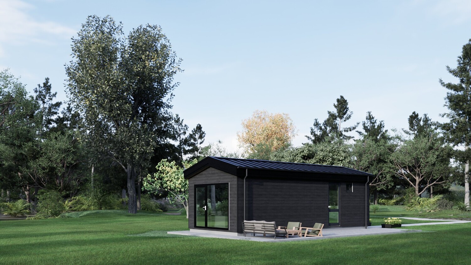 This model measures 9600 x 3890 mm and is designed for four people. The usable area is 29.8 m2. It is designed for seasonal living. I have developed a whole series of small mobile homes for camping parks. There are three well-thought-out layouts in these sizes. Model No. 1 is shown here. This set includes a detailed 3D model, floor plan and facades. The house model is designed for factory production and transportation to the installation site. You can build it yourself by ordering production drawings from me, or you can order a complete house kit from us. We manufacture ready-made house kits and deliver them throughout Europe.
