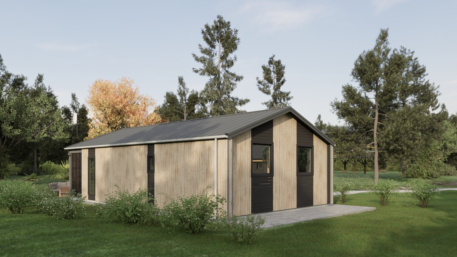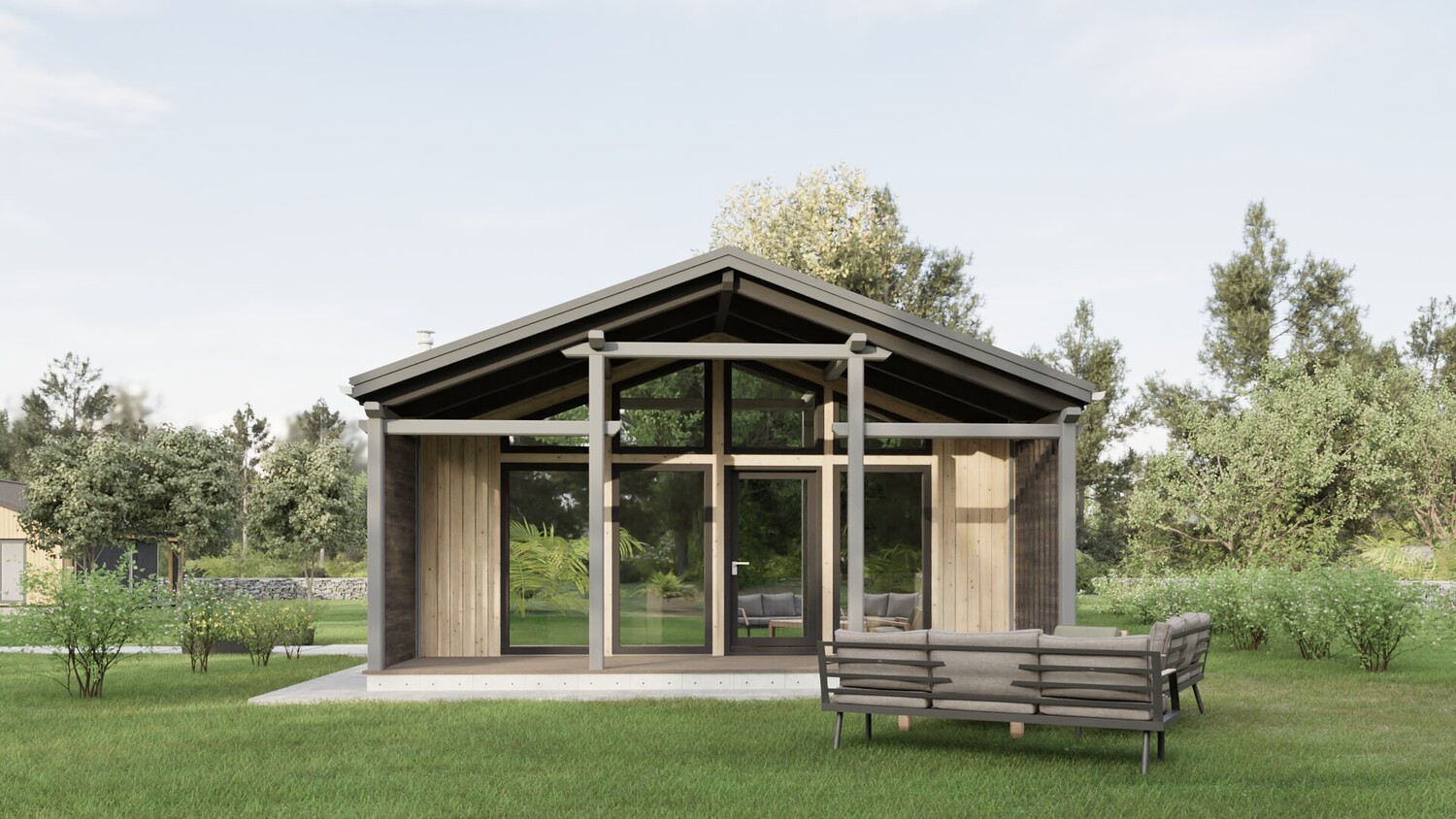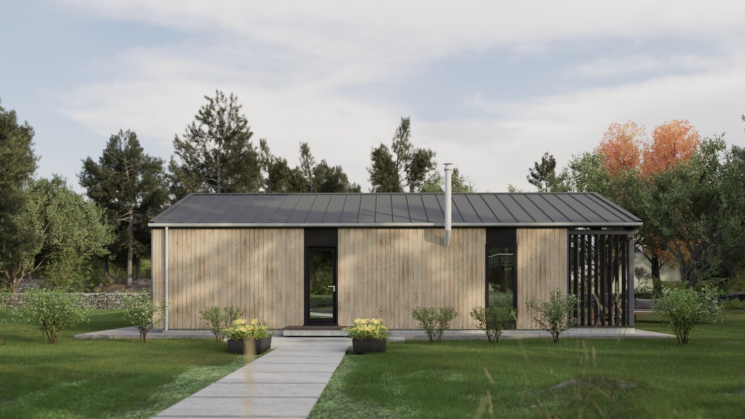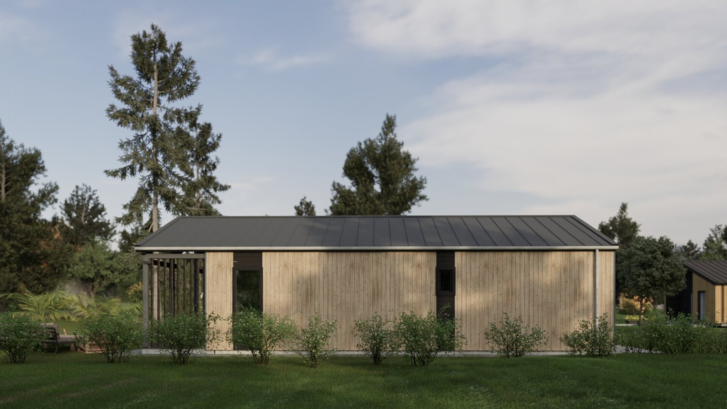 The house measures 7 x 12.6 m. It has three rooms. Separate shower and toilet. The layout is simple, compact and spacious, with every centimetre well thought out.