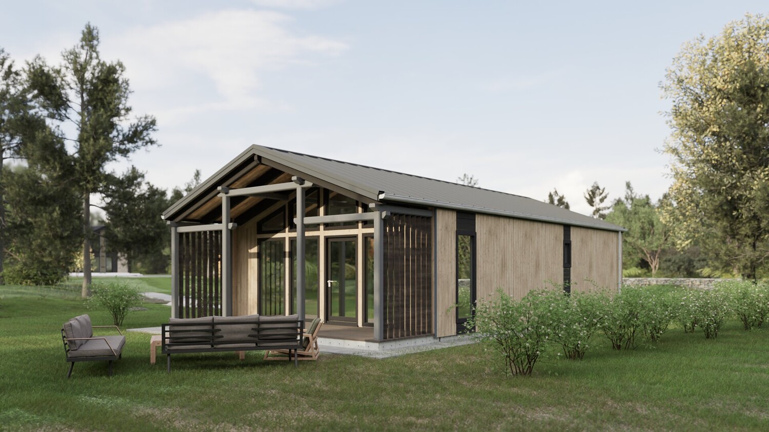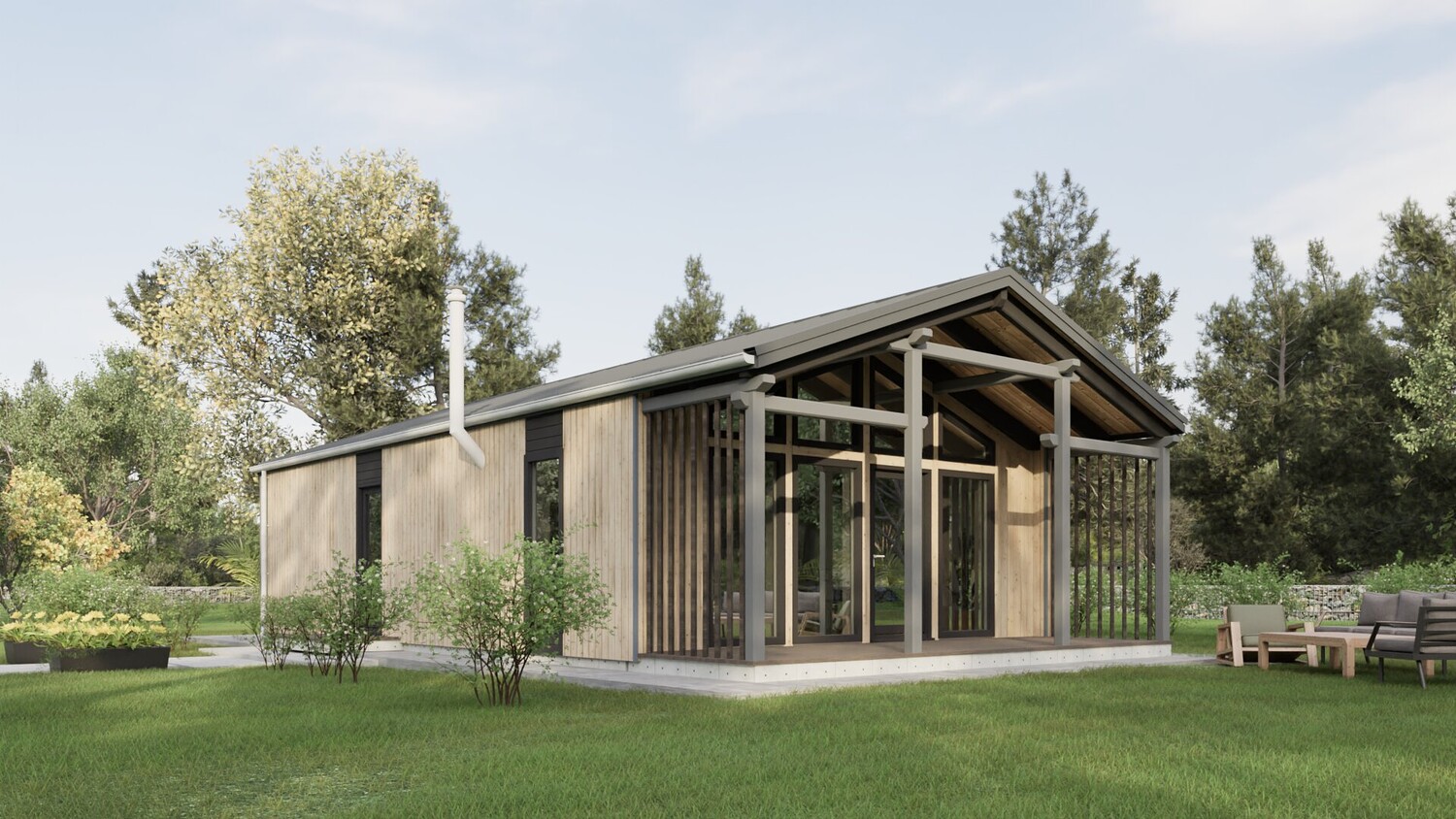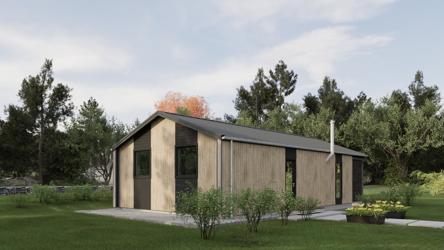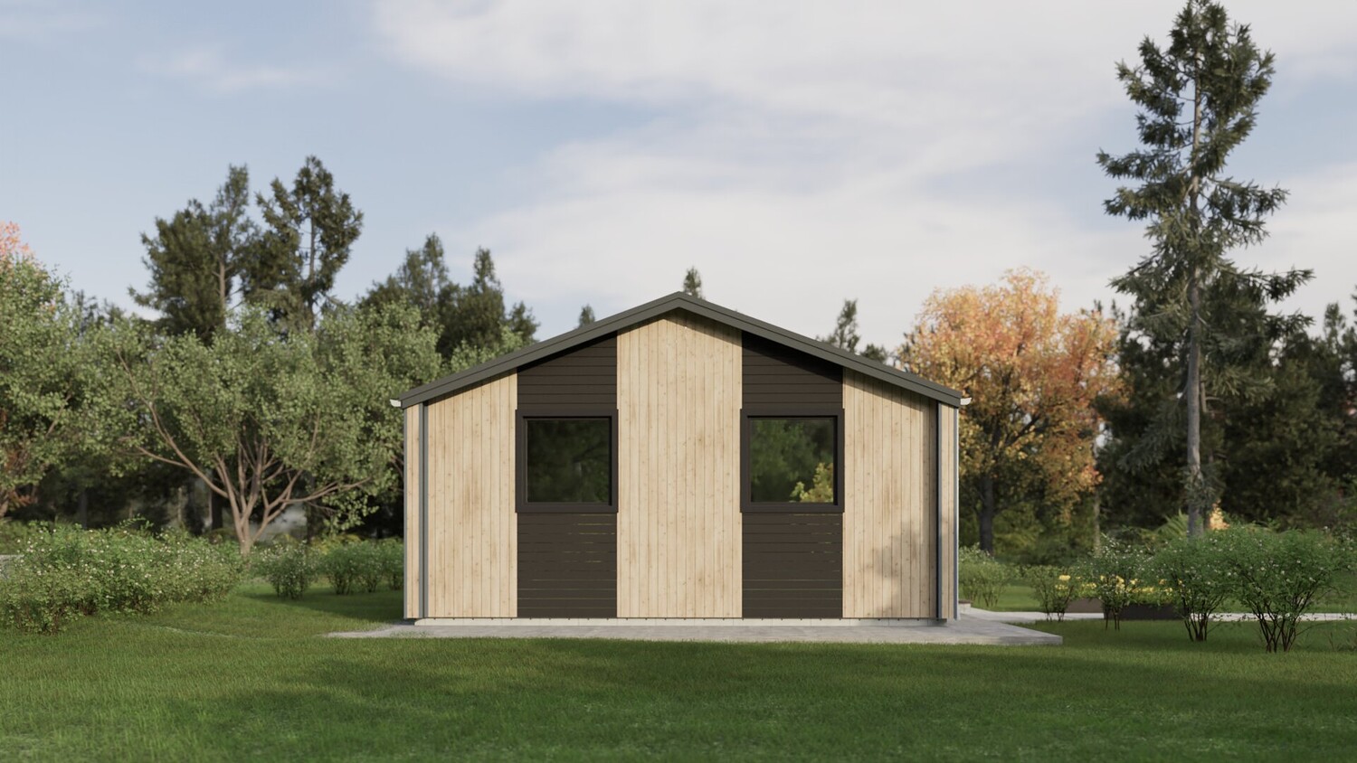The house measures 7 x 12.6 m. It has three rooms. Separate shower and toilet. The layout is simple, compact and spacious, with every centimetre well thought out.