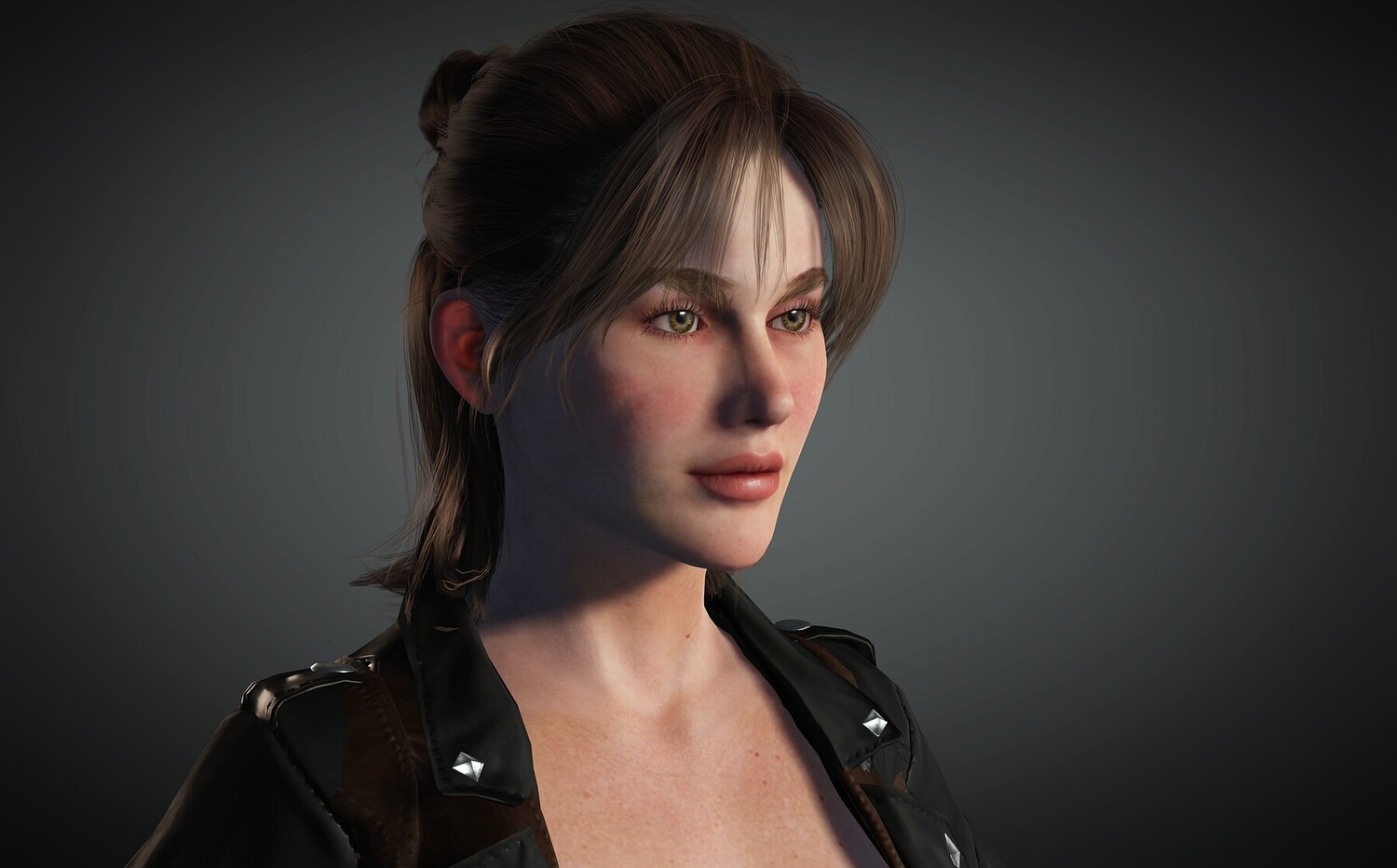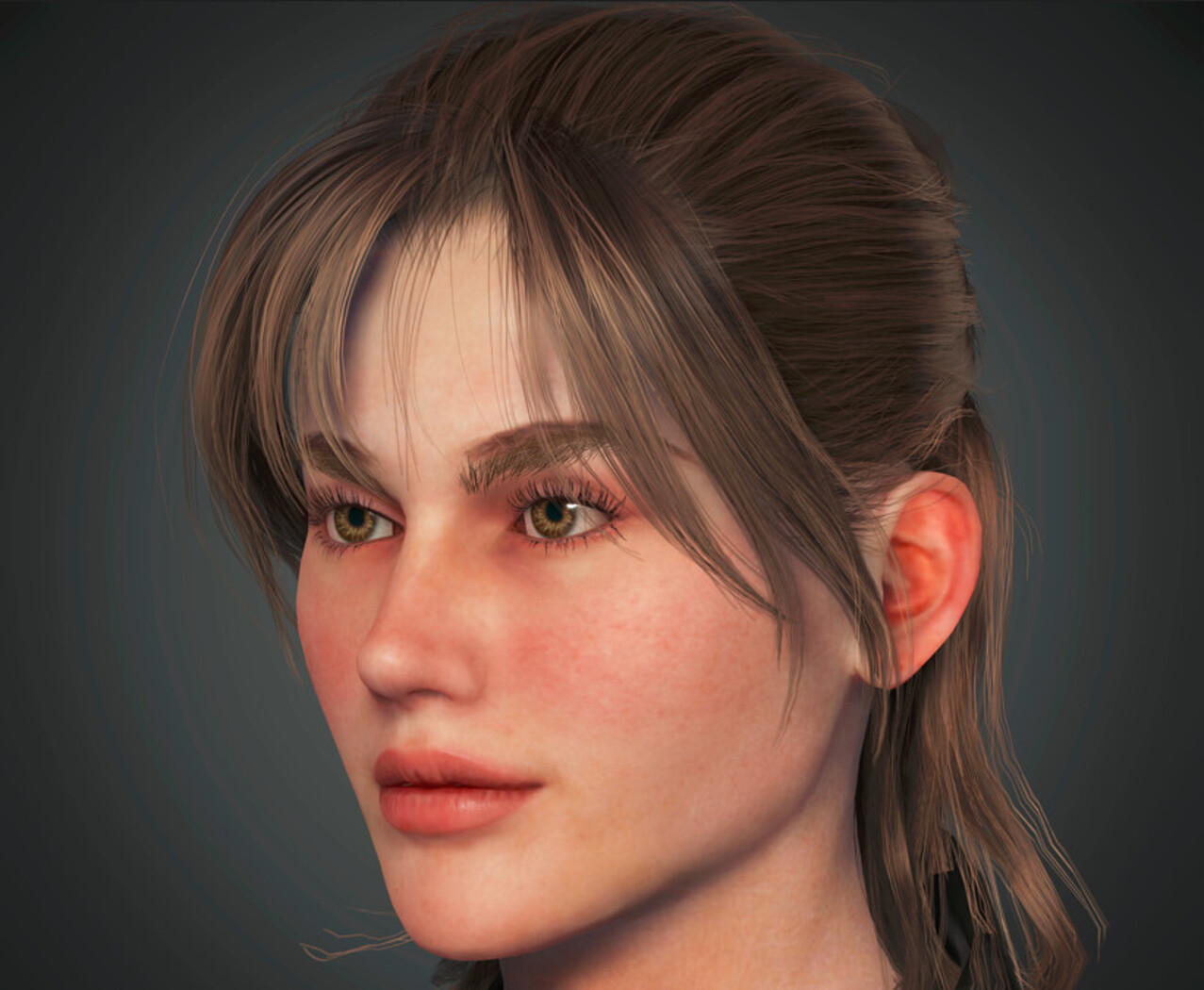 All quads except two small tris inside the nose. All images are rendered in single pass, no compositing or any other post is used.