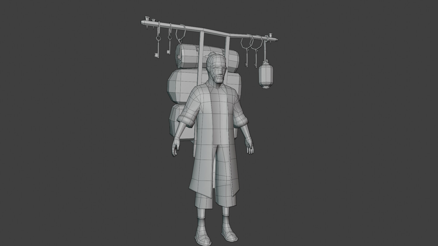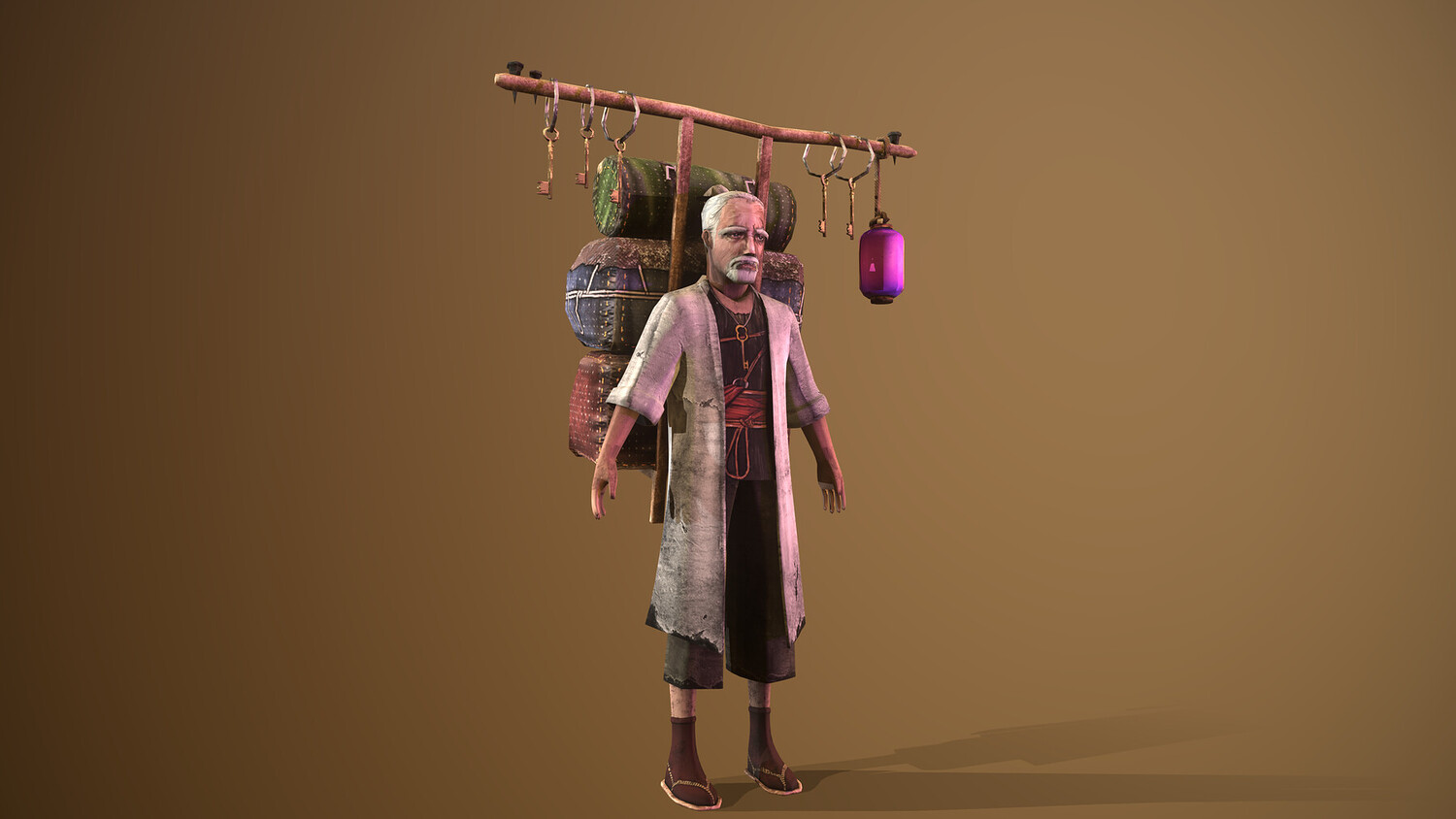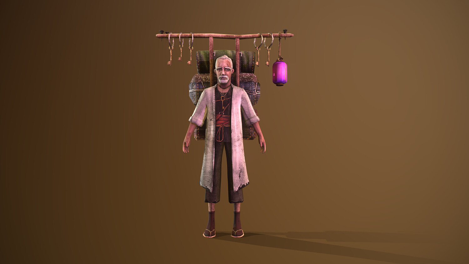 Old merchent 3dcharacter has highly detail features Low poly old merchant Game ready with high detailed Pbr textures 2048*2048 The 3dcharacter is rigged and ready for animation