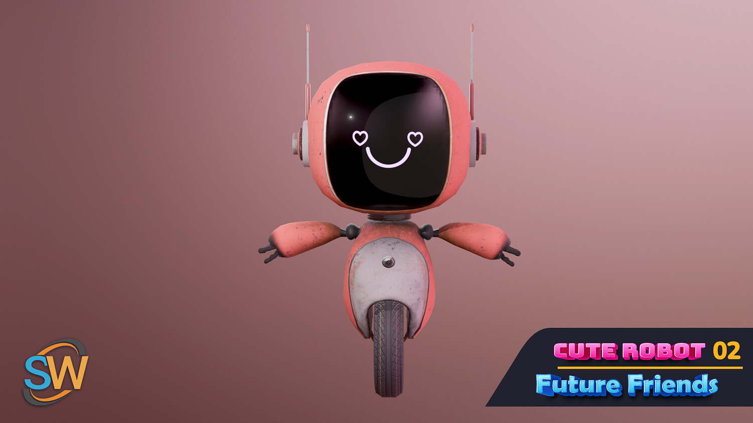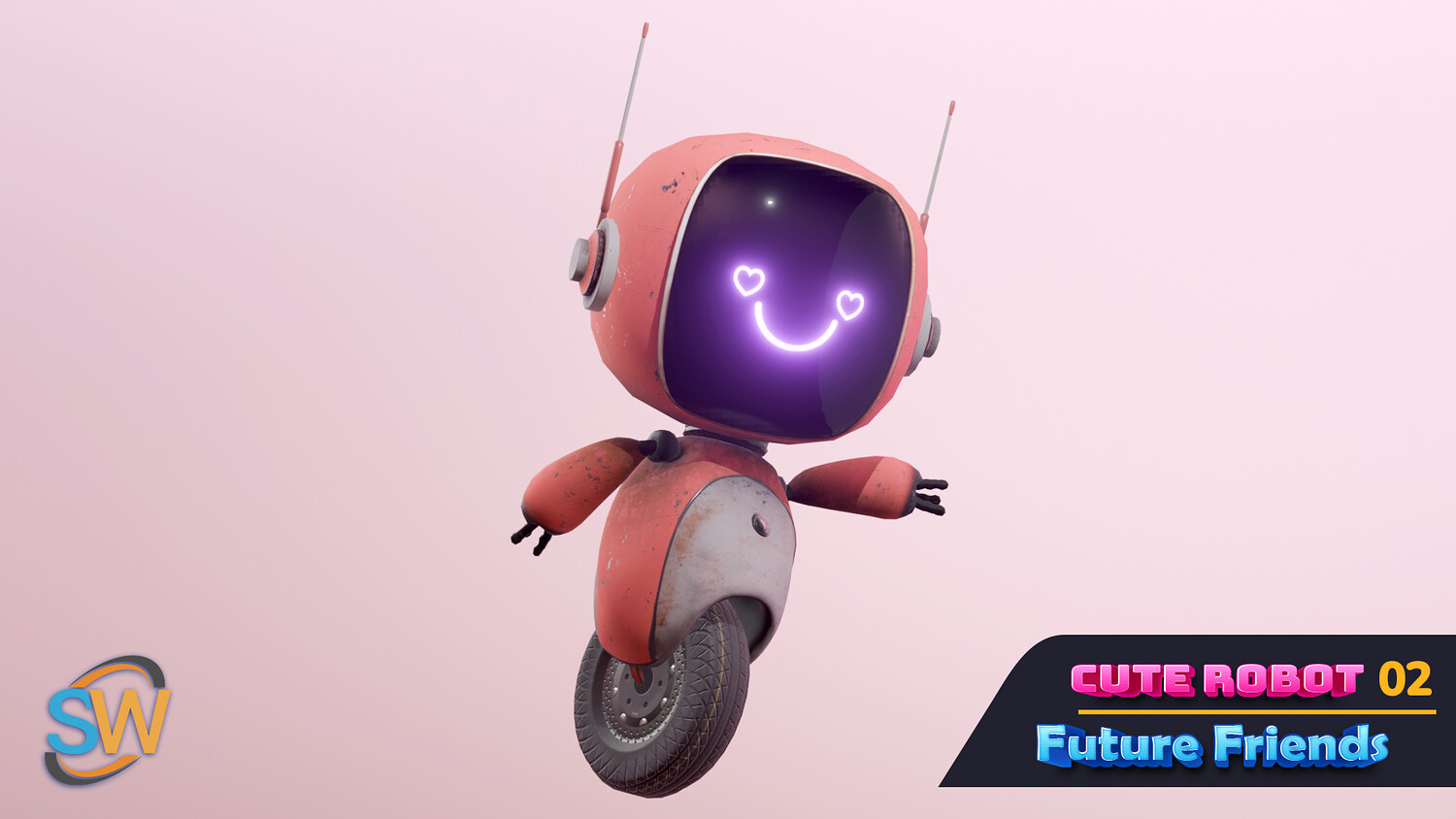 Cute Robot 02 is a stylized 3D character with a glowing emissive face. Swap the emission map to change expressions. Perfect for sci-fi, casual, adventure, and kids’ games or as a lovable NPC.