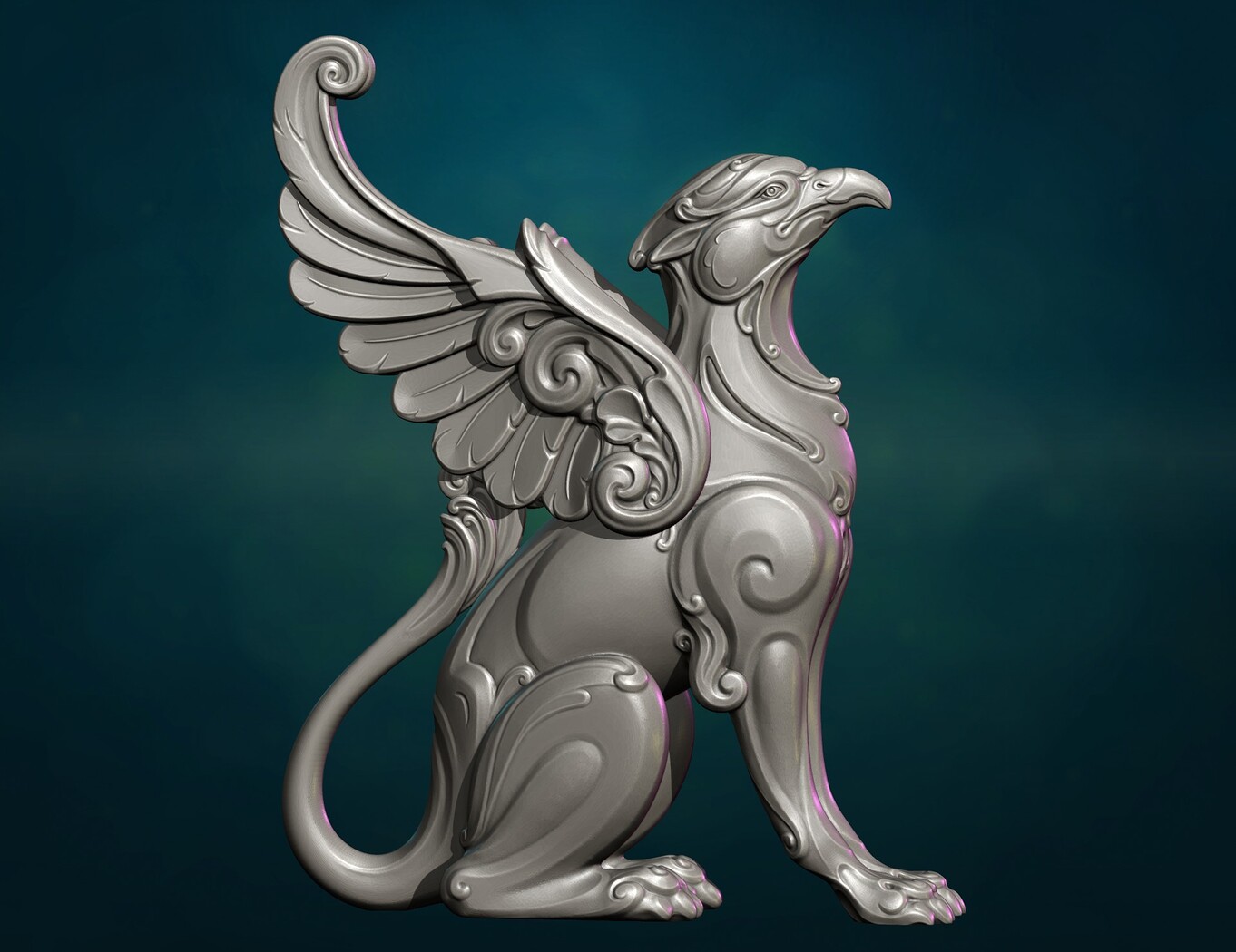 Print ready griffin sculpture.
