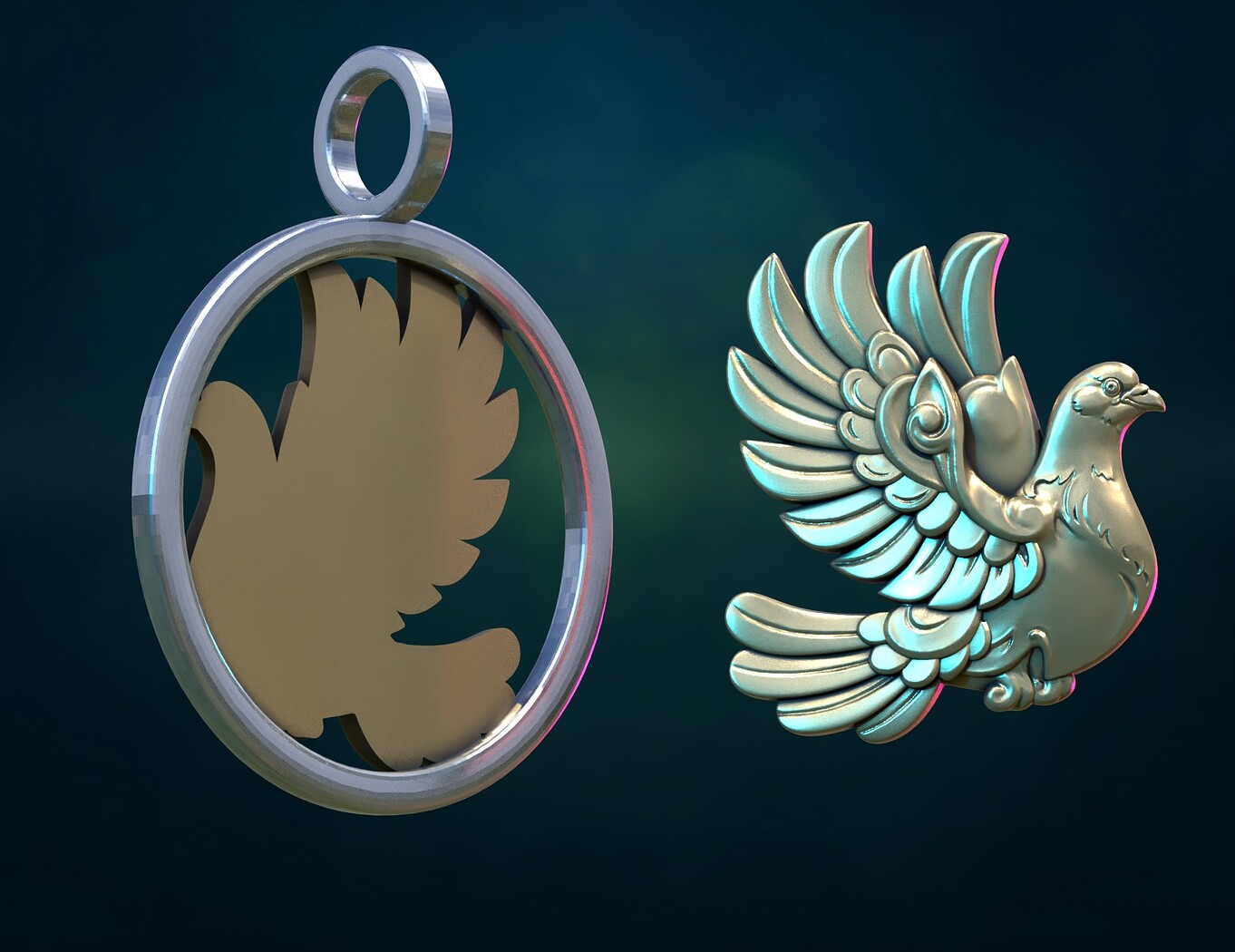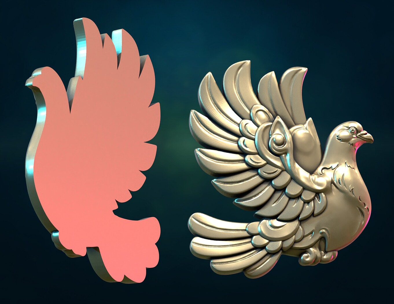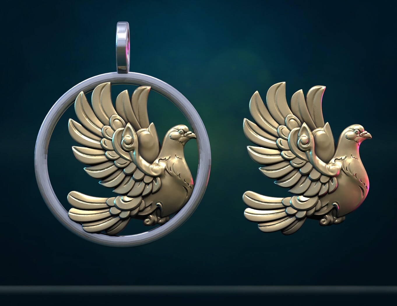 Print ready pigeon bass-relief and pendant.