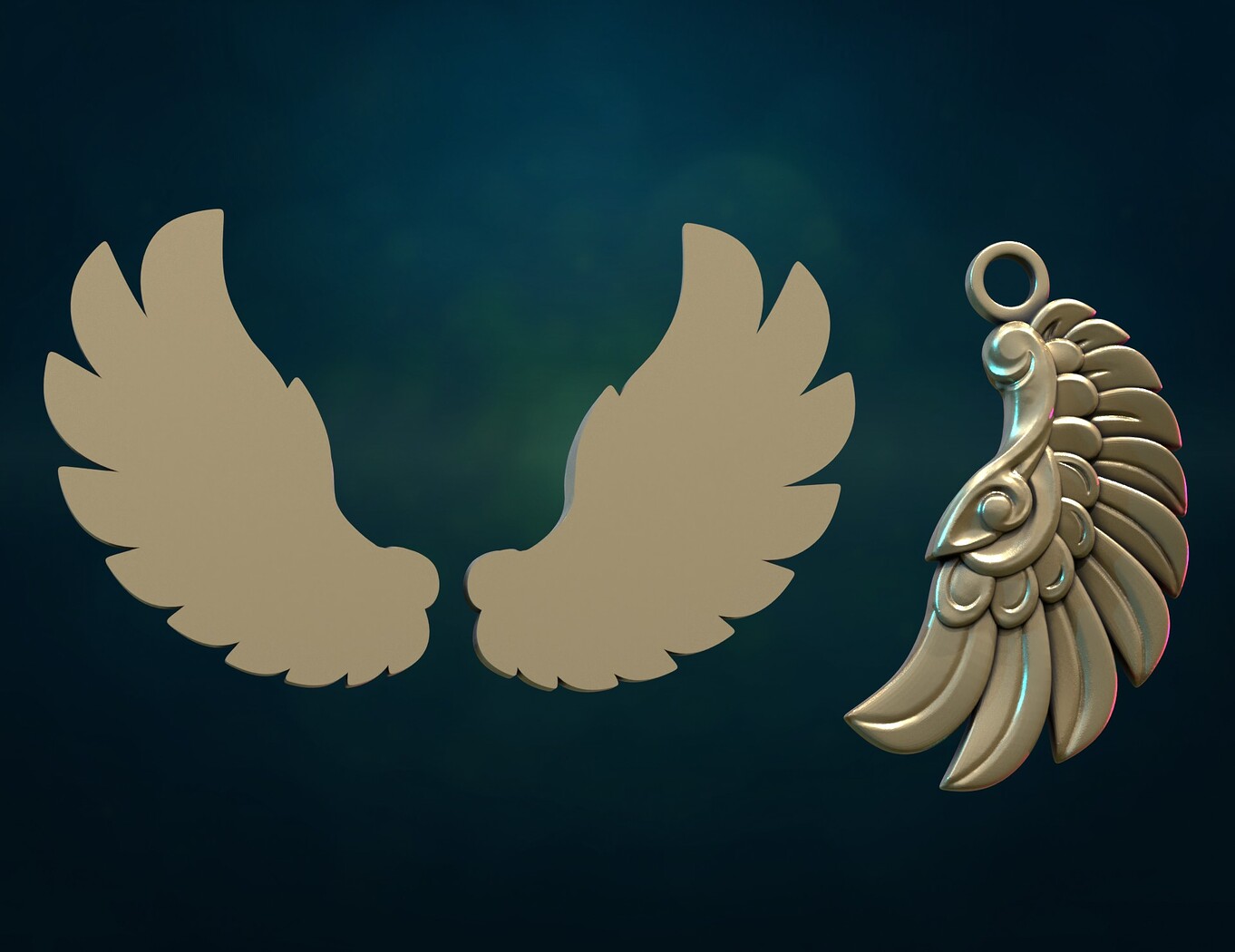 1) Wingapnd (.blend, .stl, .obj, .fbx, .glb) The Pendant 2) Wing_a (.blend, .stl, .obj, .fbx, .glb) The Wings.