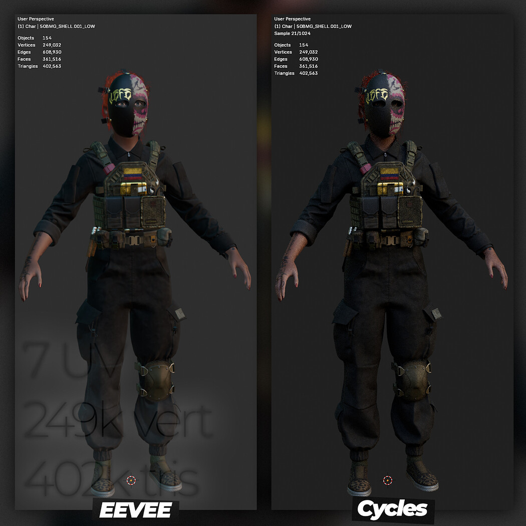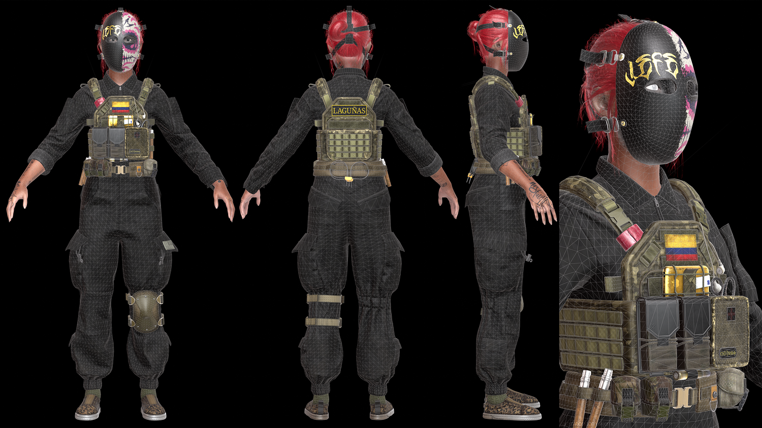 Valeria is a cartel member and biggest patriot who works for people all over the world, ifykyk ;-)) This lady loves cash, shine of expensive metal, the smell of gun powder, music and cheap show-offs. At same time she's not a big fan of richest country of the world and local feds. This darling robbed me of: 6 x 4k maps for garment, body etc. 1 x 2k map for hair 1x 2k map for lashes 402k tris (295k - hair, 106 - rest character) Non-rigged TinyEyes 280 mb mesh and maps.