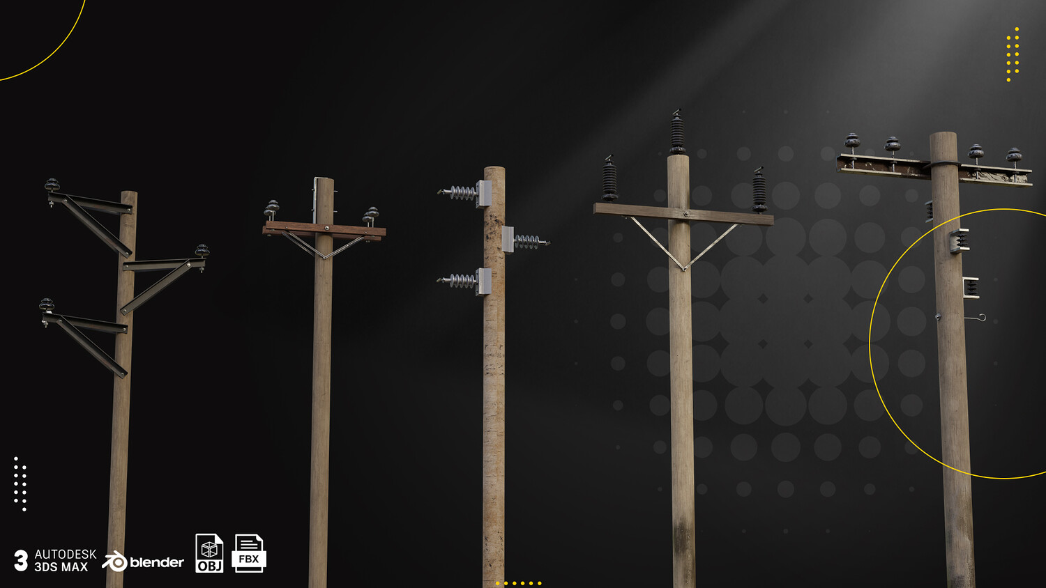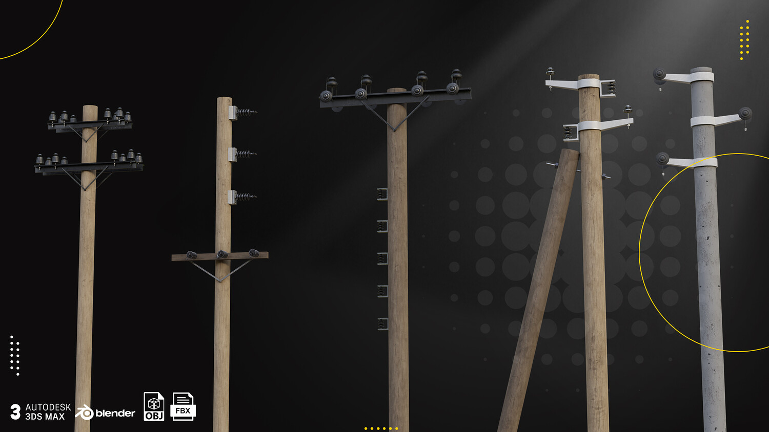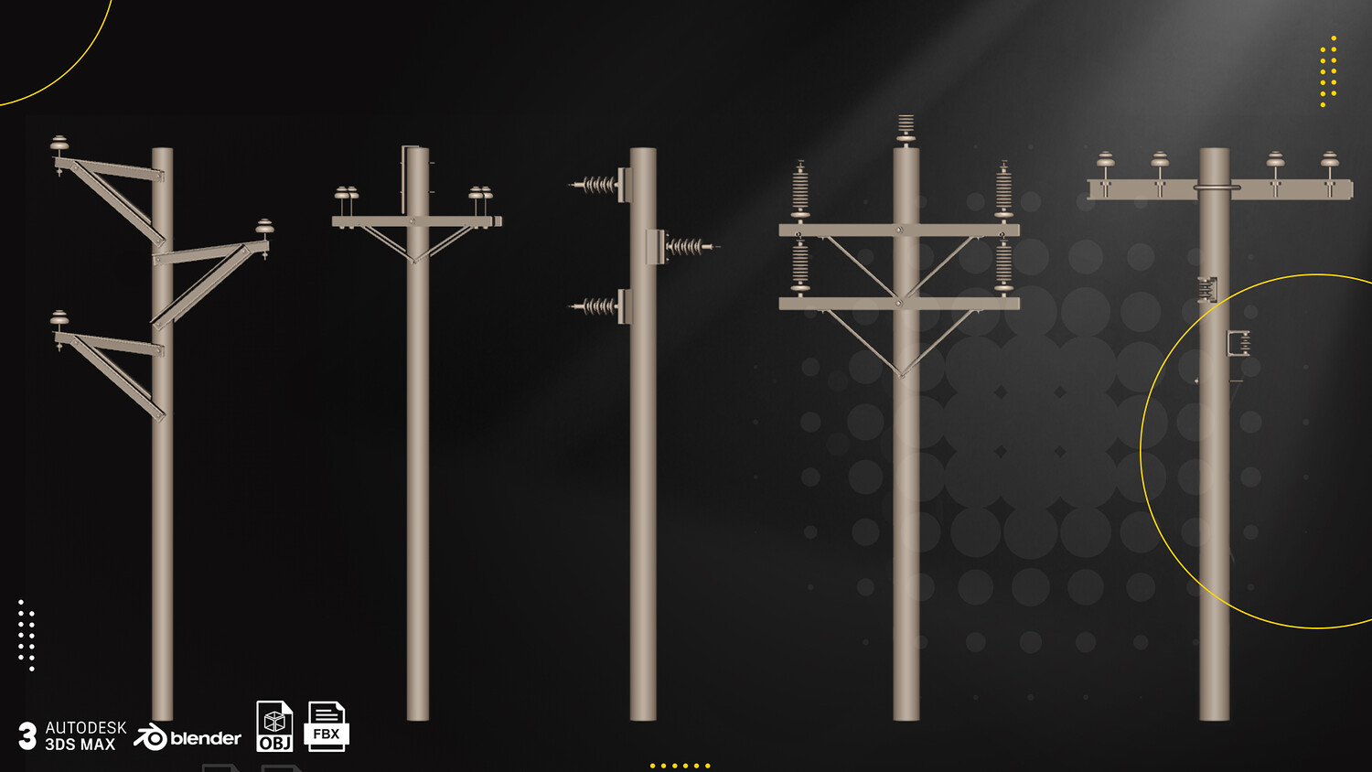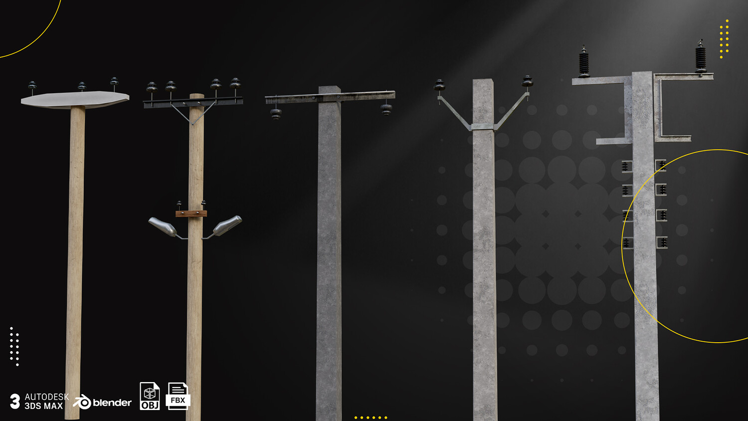 In this product, you will have 20 Low Poly Utility Poles that you can use in various design, animation, game creation, visualization, etc.