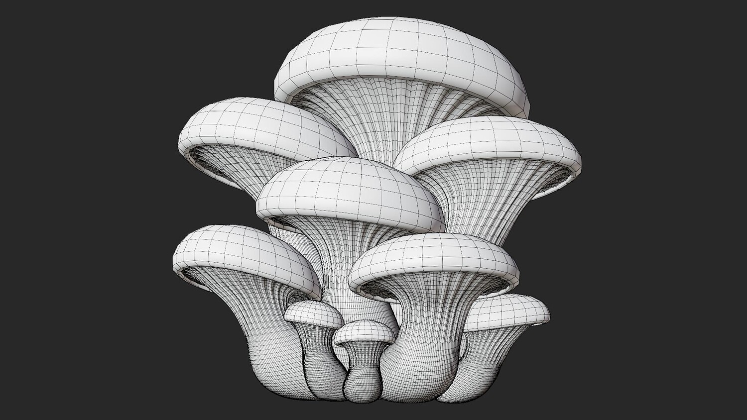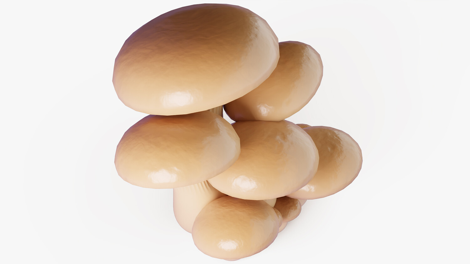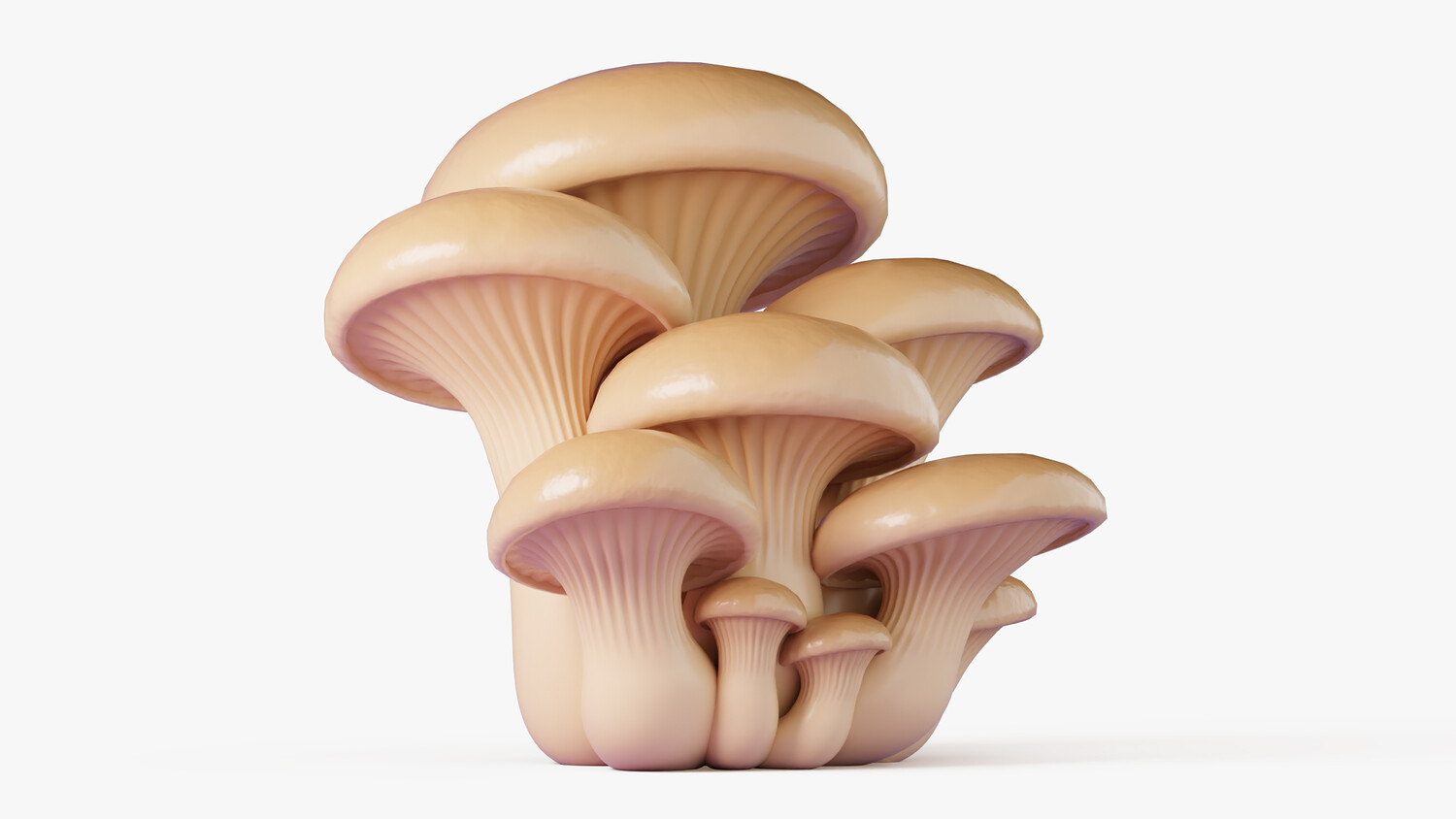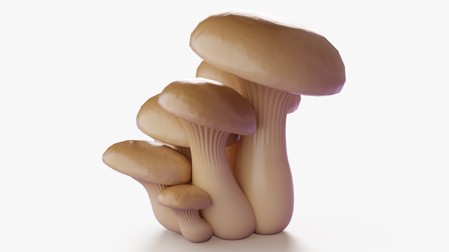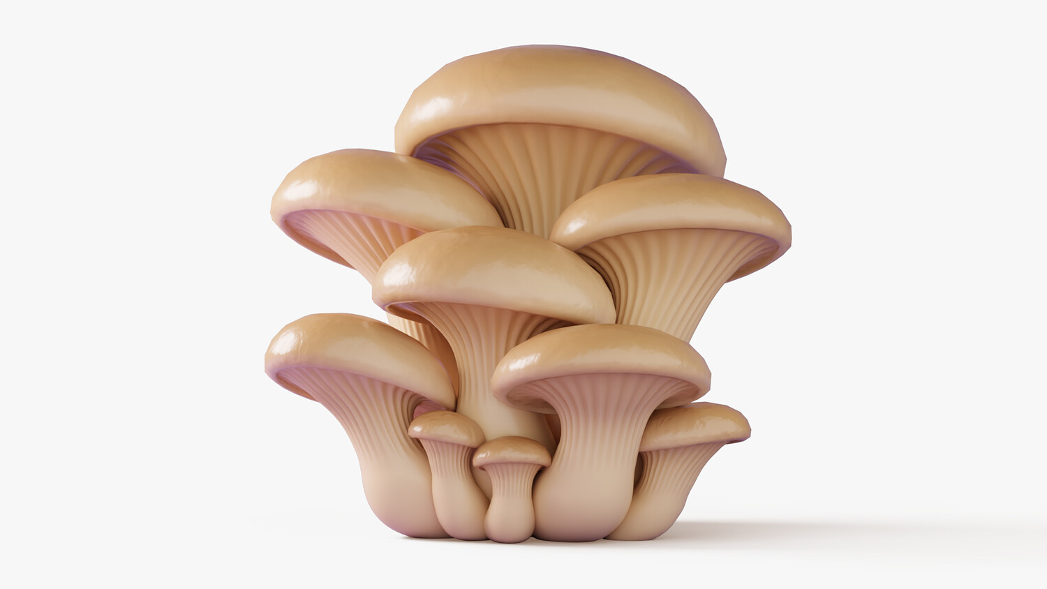 Stylized cartoon 3D model of an oyster mushrooms cluster with layered caps and flowing gill shapes. The group features multiple sizes in a compact composition, with glossy highlights and soft beige gradients for a clean, friendly look. The wide rounded caps and elegant ribbed underside create a strong readable silhouette that works well in both close ups and background dressing. Perfect for food themed scenes, cozy kitchens, grocery and market visuals, farms, restaurants, and stylized forest environments. Use it as a cooking ingredient, decorative prop, collectible item, crafting resource, or as a centerpiece in cute dioramas. The neutral color palette blends easily with different lighting and art directions, while the simple shapes stay recognizable in thumbnails and UI presentations. Ideal for mobile projects, casual visuals, educational content about fungi, animations, product mockups, and AR/VR scenes where you need a polished toon style without heavy realism.