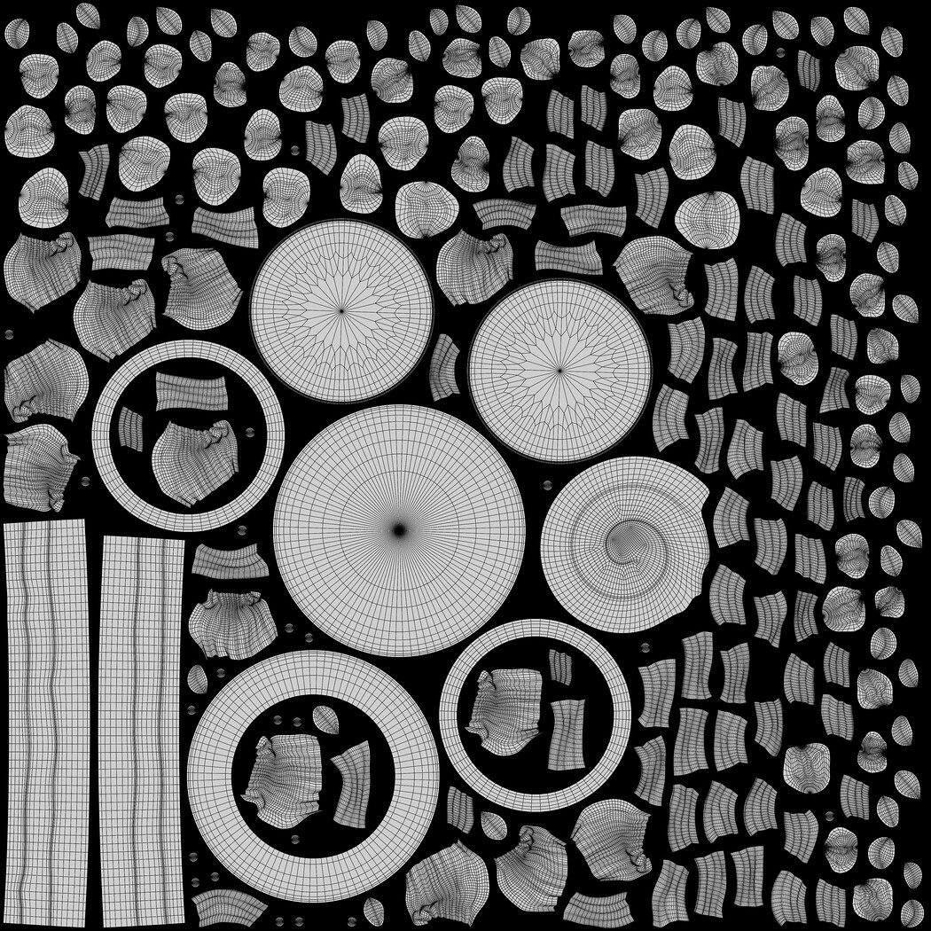Textures: 4 color map, 1 roughness, 1 metalness.