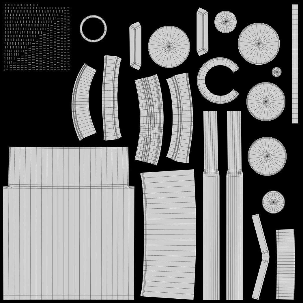 Textures: 1 color map, 1 roughness, 1 metalness.