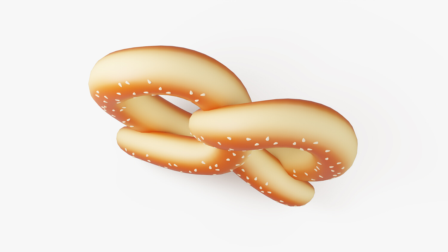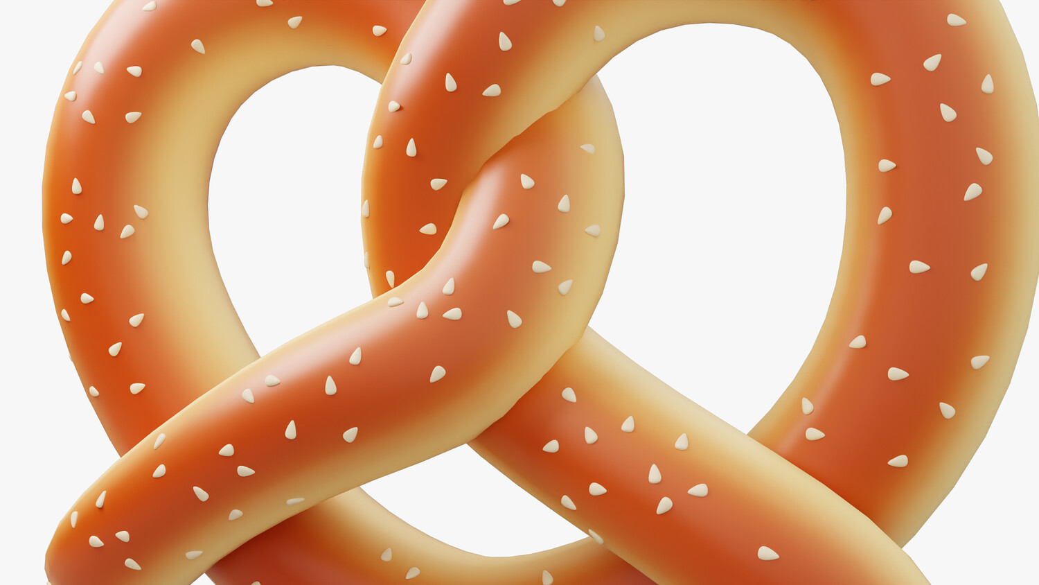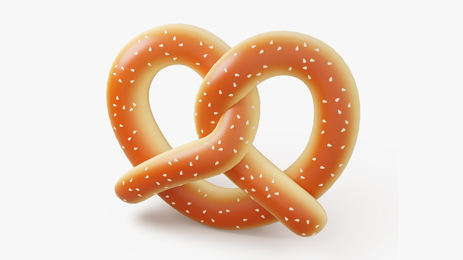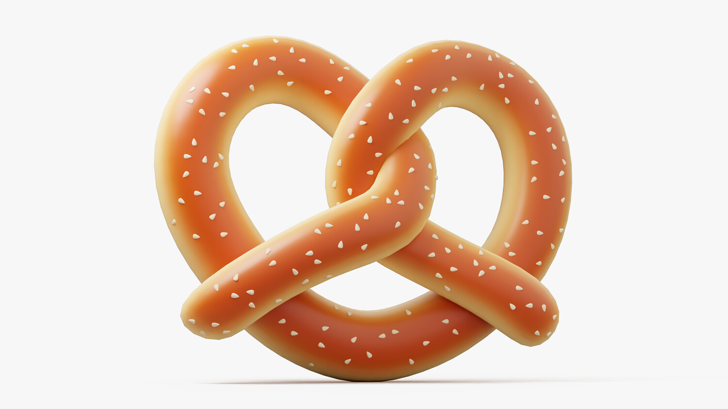 A stylized 3D pretzel icon with a glossy, golden-brown crust and sprinkled with coarse salt. This soft, twisted pastry has a clean, cartoonish look, making it ideal for bakery-themed visuals, game UI, food apps, and cute icon packs. The soft shading and playful form give it a charming and modern appeal.