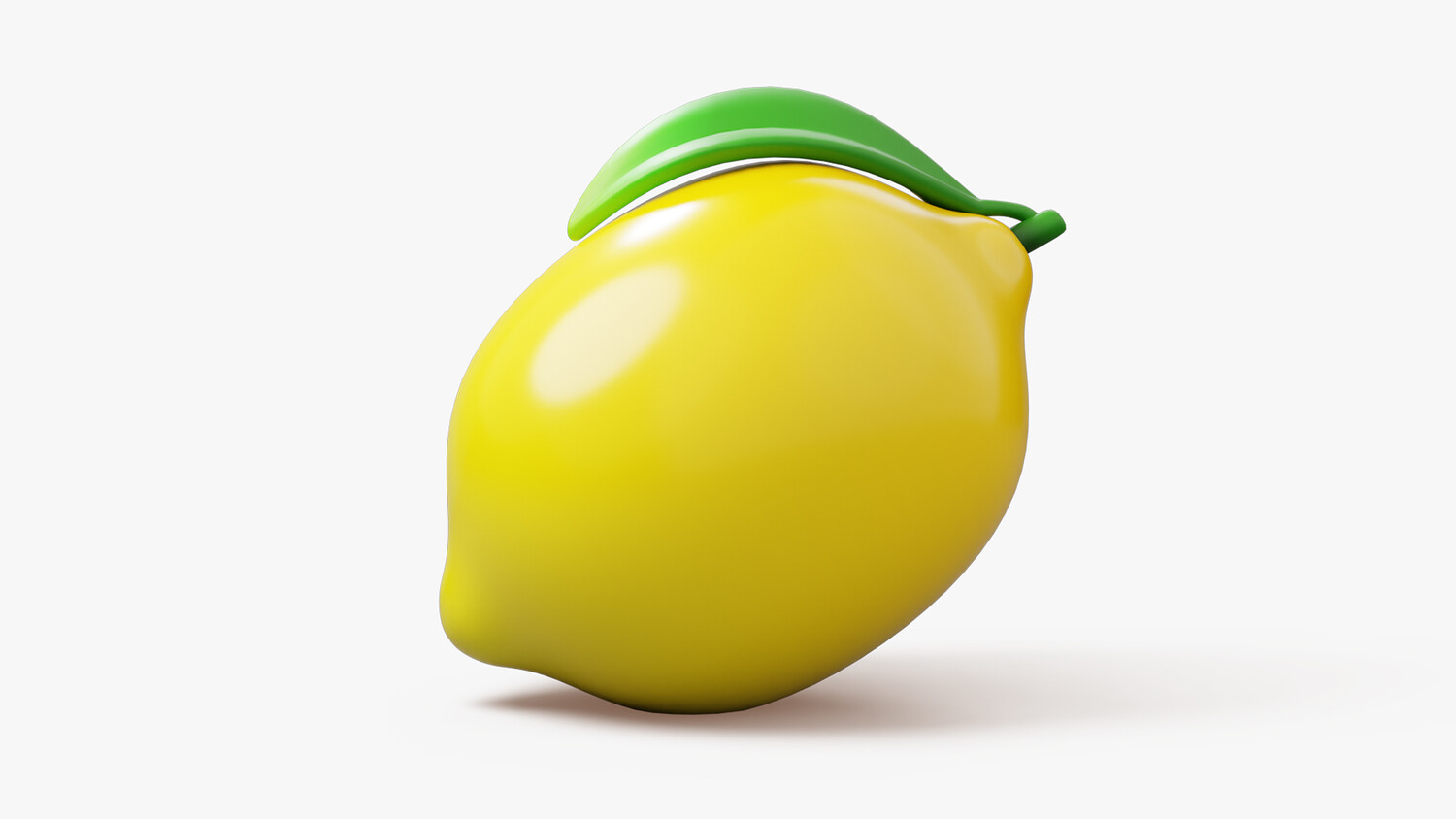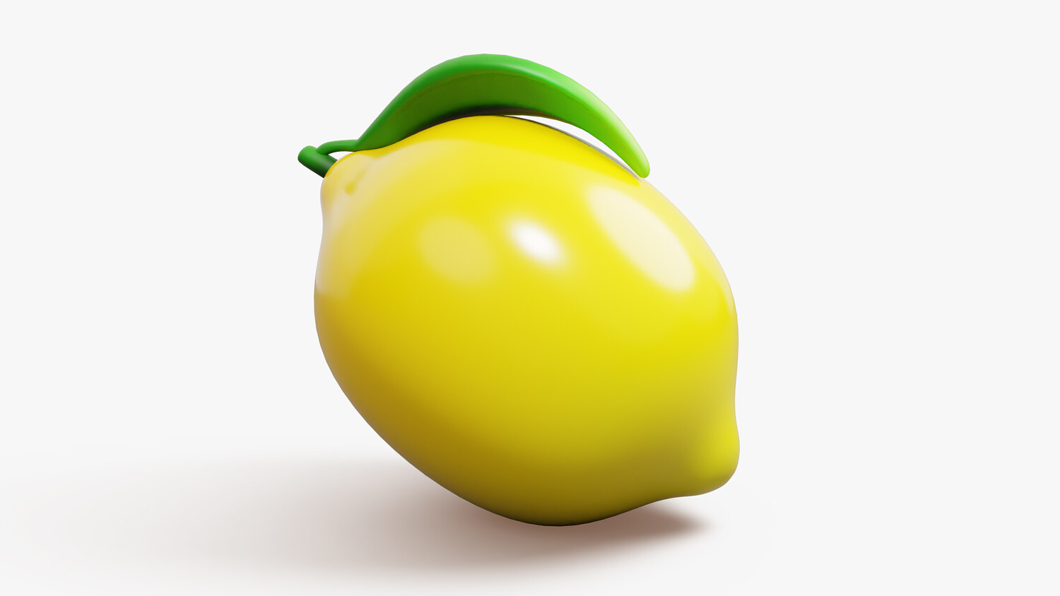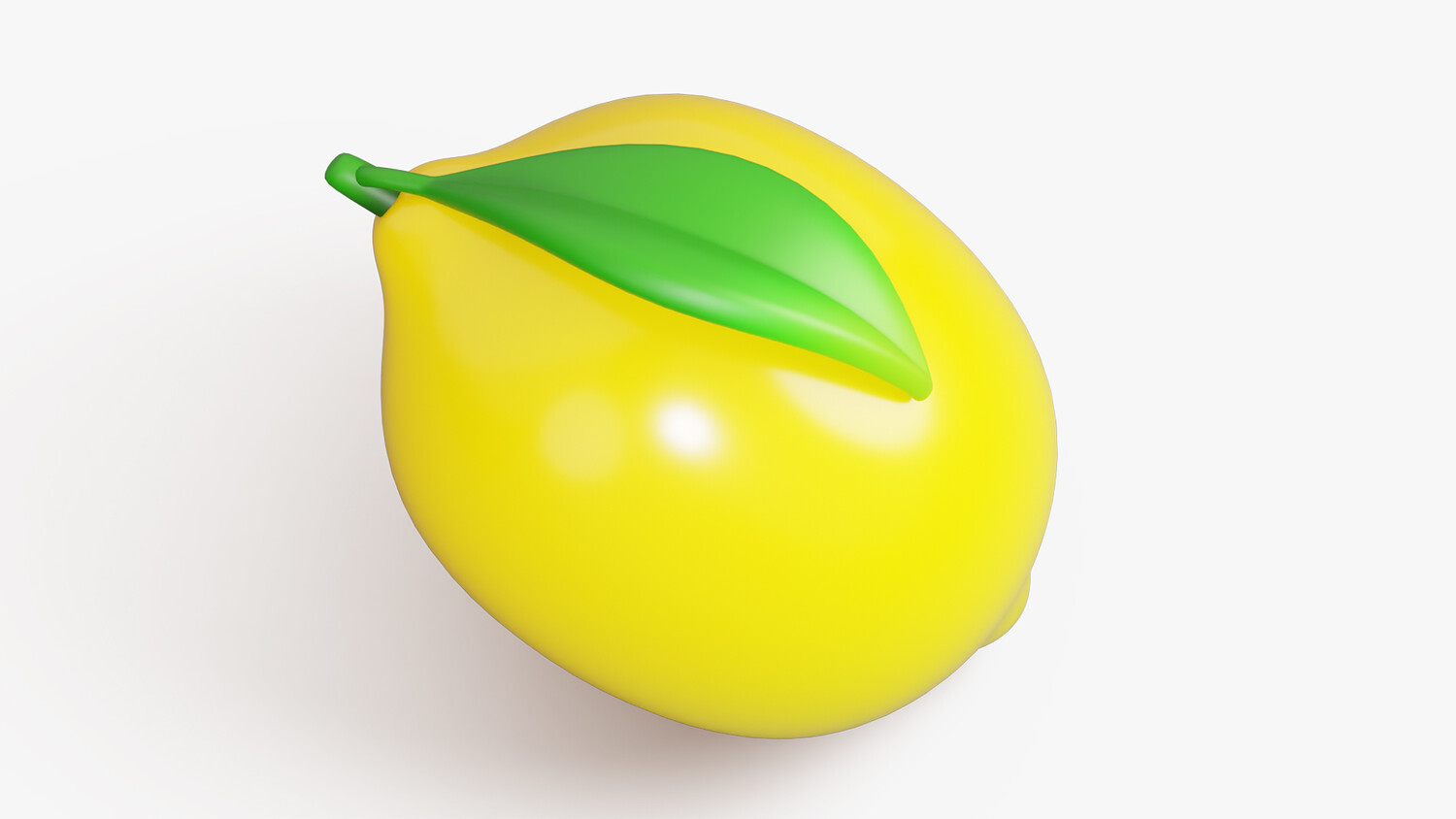 A cute and stylized 3D model of a lemon, perfect for illustrations, icons, and artistic renders. This vibrant tropical fruit features a glossy, juicy appearance with a bright yellow color, making it ideal for food-related visuals. Provided in Blender (.blend), FBX, and OBJ formats for easy use in various projects.
