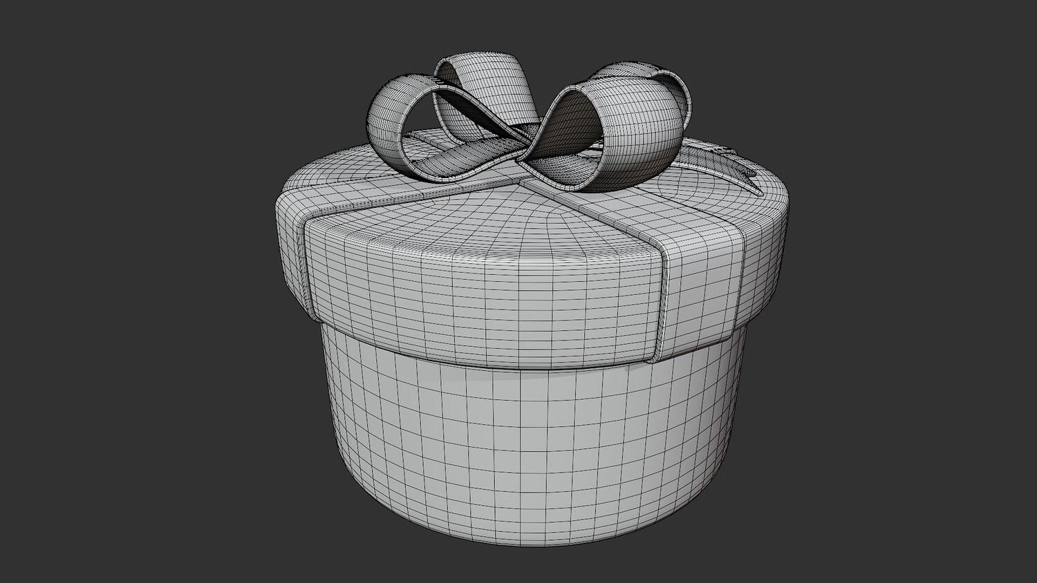This is a stylized 3D round gift box in a playful cartoon style, featuring a glossy purple surface with polka dots and a smooth satin ribbon tied into a decorative bow. The circular shape and vibrant color scheme make it perfect for festive scenes, party illustrations, game assets, or birthday-themed content. Ideal for stylized and casual visual environments.