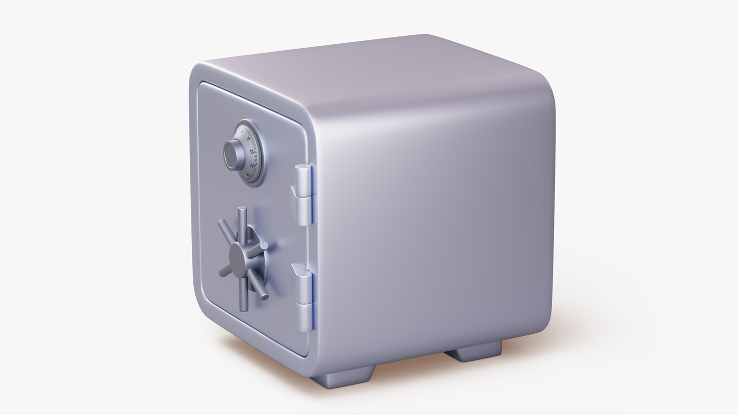 A sleek and stylized 3D cartoon vault model, designed to represent security, savings, or protected assets. With soft edges, a clean glossy finish, and classic locking mechanisms, this safe is ideal for games, mobile apps, finance dashboards, educational projects, and illustrations.