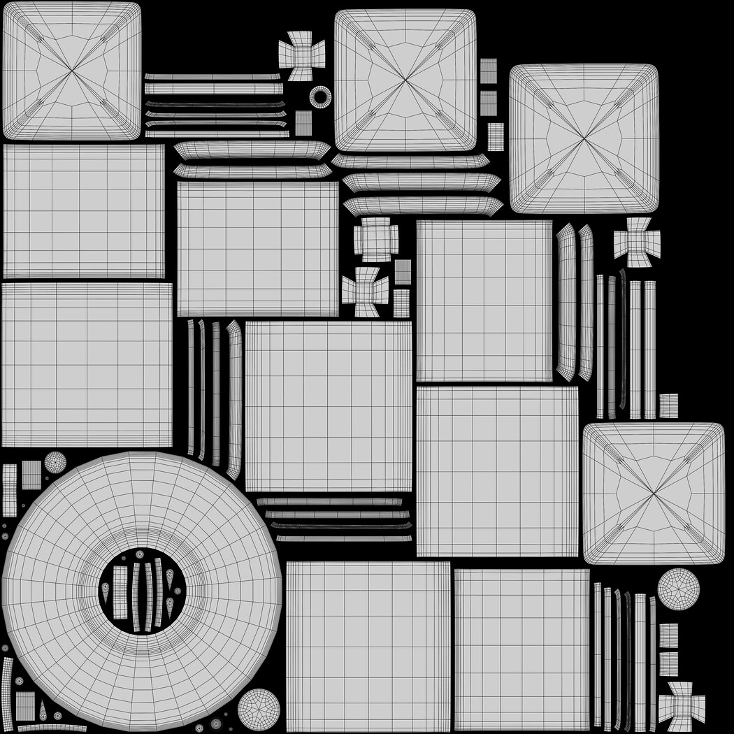 Textures: 1 color map, 1 roughness, 1 metalness.