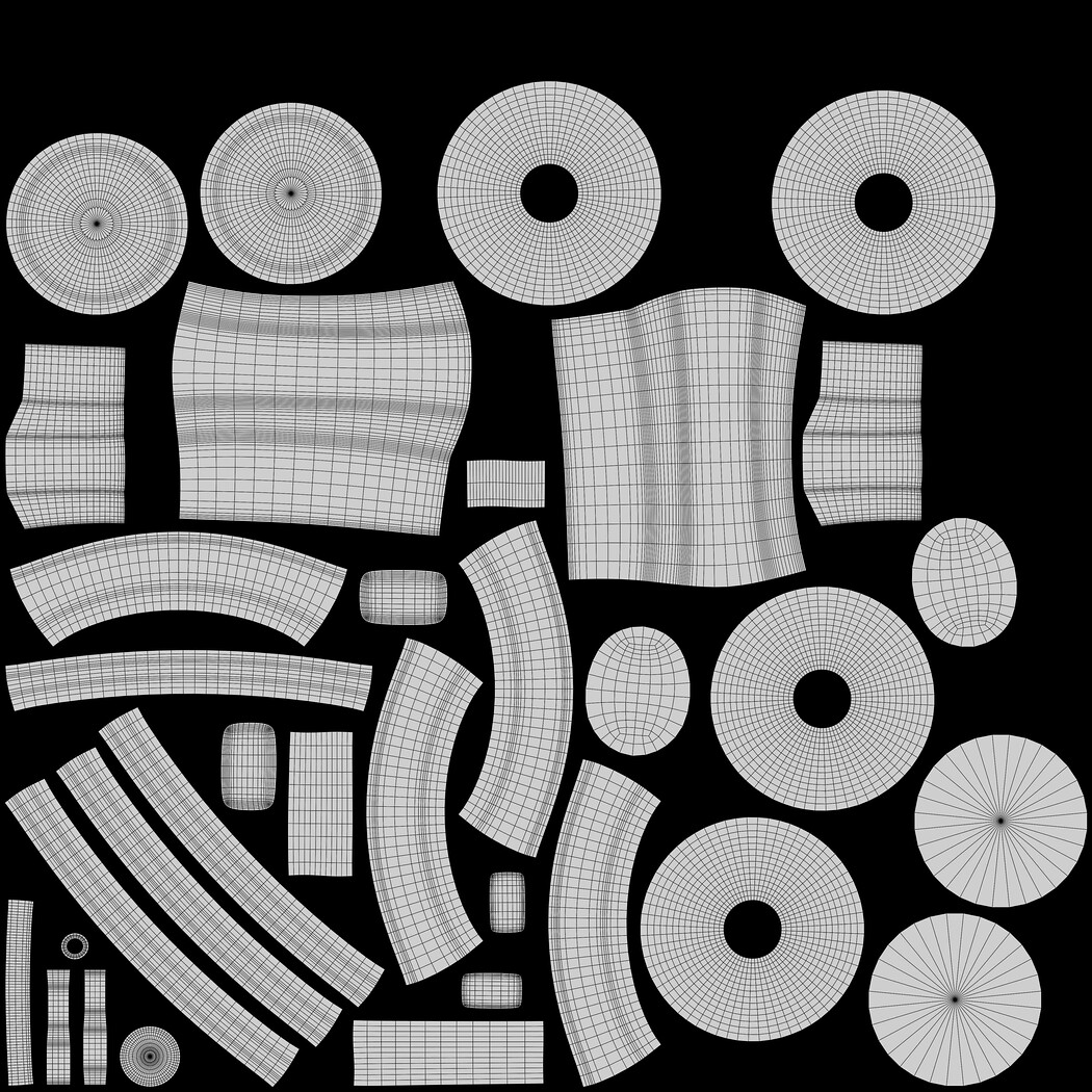 Textures: 1 color map, 1 roughness, 1 metalness.