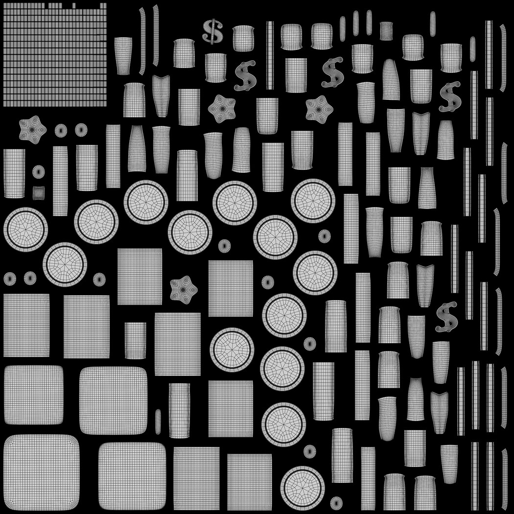 Textures: 1 color map, 1 roughness, 1 metalness.