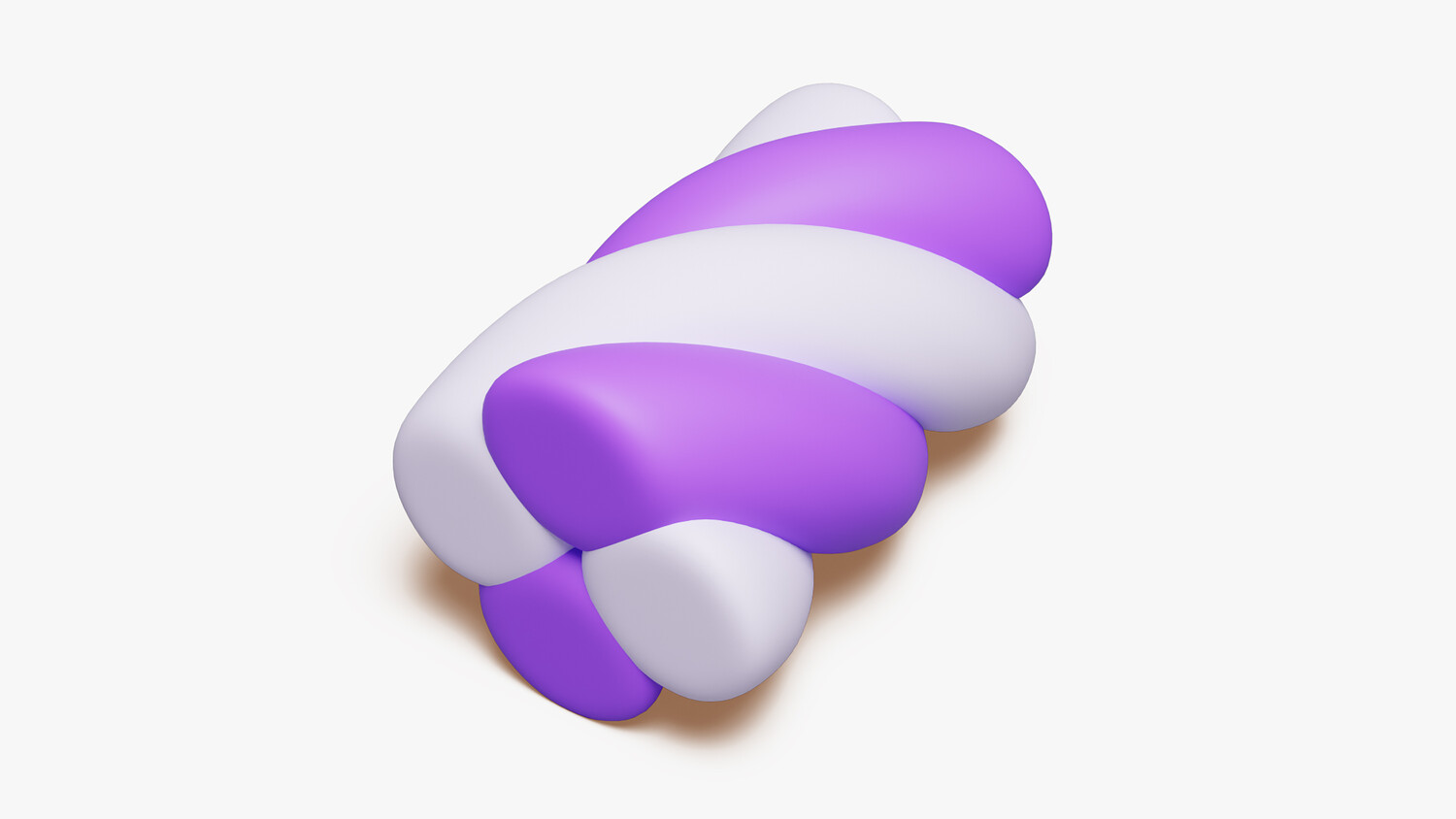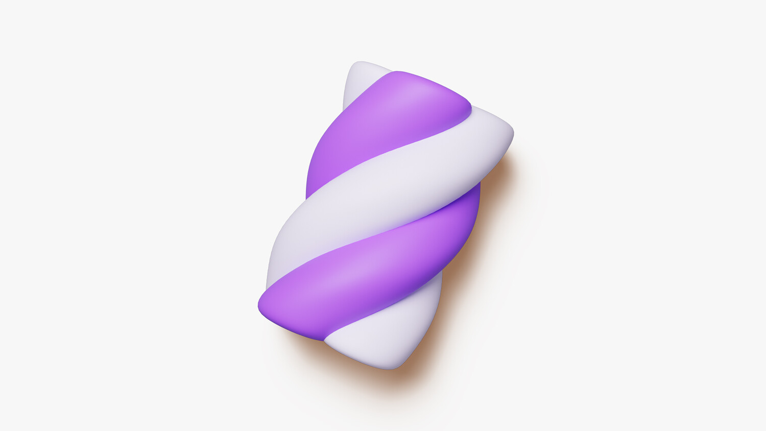 This 3D marshmallow candy set is created in a colorful cartoon style, combining playful shapes and vibrant tones to make it visually striking and fun. The set includes three different marshmallow-inspired designs: a twisted purple-and-white piece, a soft round swirl, and a charming pink flower with a yellow center. Each candy features smooth glossy surfaces, rounded edges, and a friendly aesthetic, making them suitable for a wide variety of creative uses.