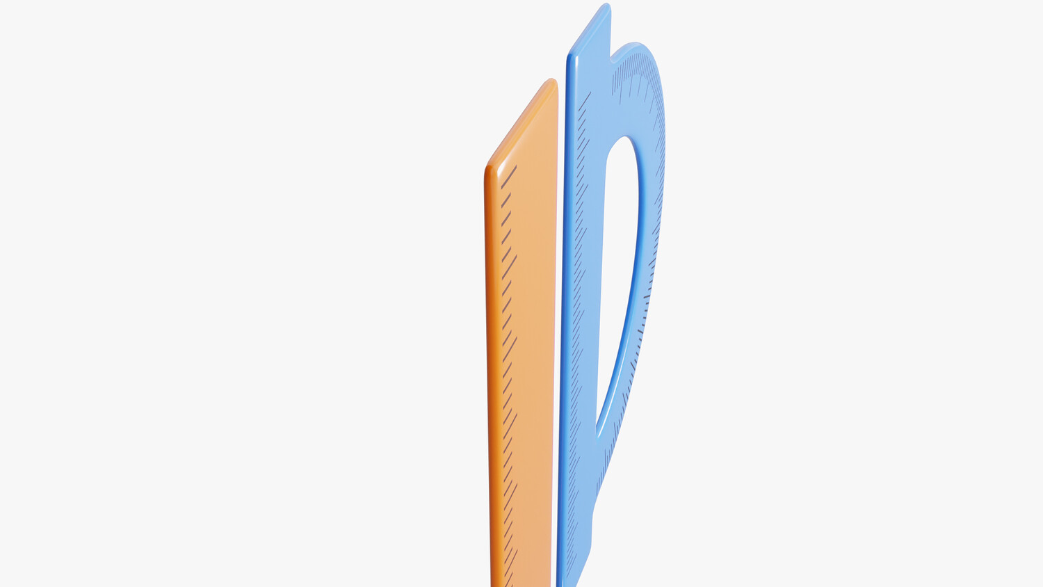 This 3D cartoon-style rulers set is designed with a clean, modern aesthetic, making it ideal for educational, creative, and graphic projects. The model features a straight orange ruler paired with a bright blue semicircular protractor, both with a smooth glossy surface and precise markings for a polished, professional look. The rounded edges and vibrant colors give the set a friendly, approachable appearance, perfect for school-themed illustrations, icons, or animation assets. With its balanced design and high-quality details, this model is versatile for web graphics, infographics, apps, or any digital project that needs a fresh and visually appealing touch.