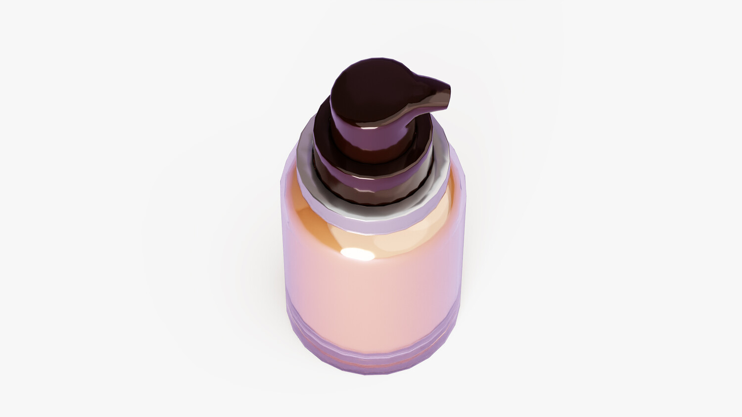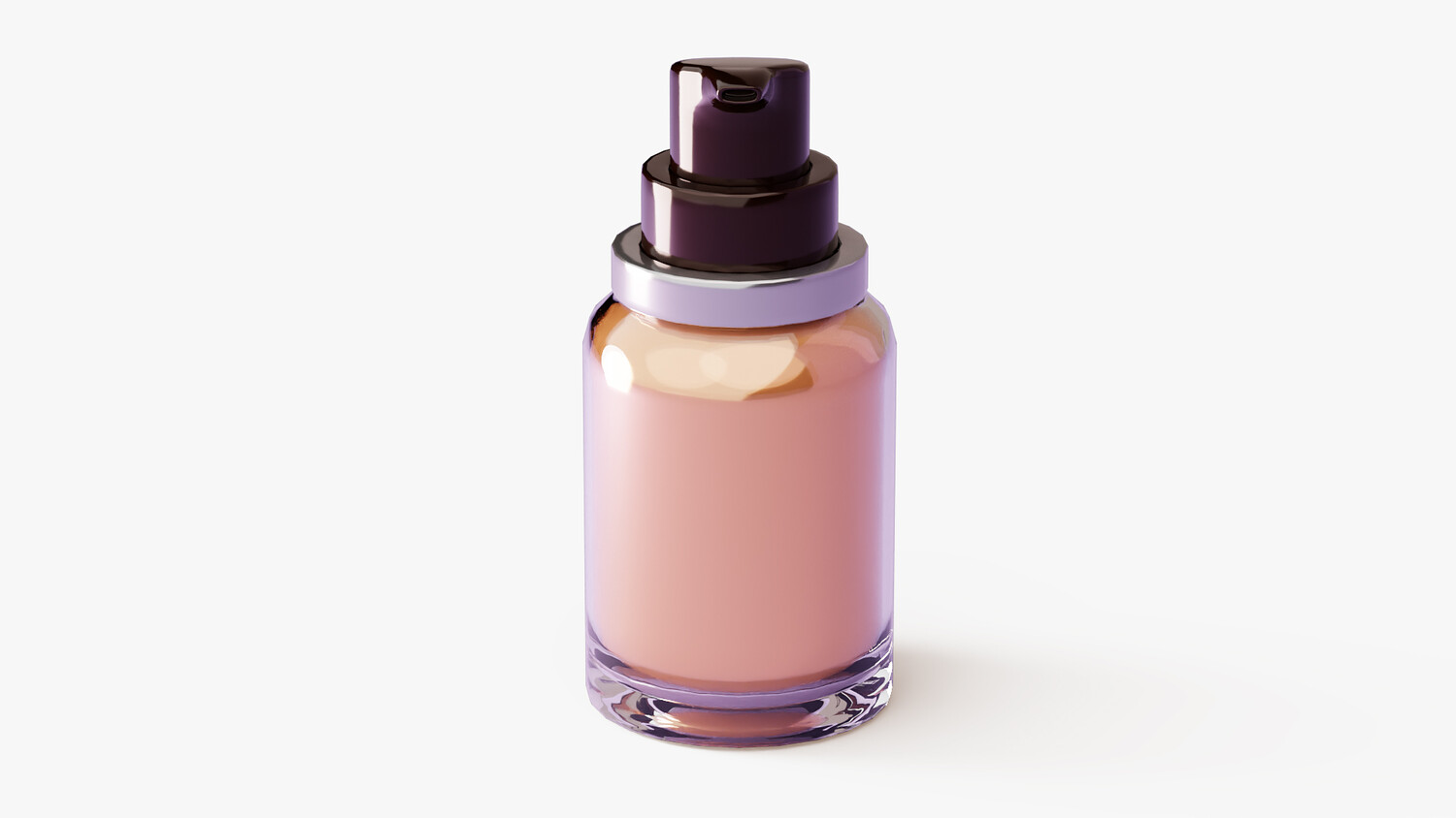 Elegant pump foundation bottle rendered in glossy glass with a soft peach-beige liquid, silver collar and deep brown dispenser. A clean studio background keeps attention on shape, color and reflections, ideal for cosmetics packaging mockups, branding previews, advertising banners, beauty blogs, ecommerce listings and infographics. Suitable for liquid foundation, BB and CC creams, serums, primers and other modern skincare-makeup concepts.