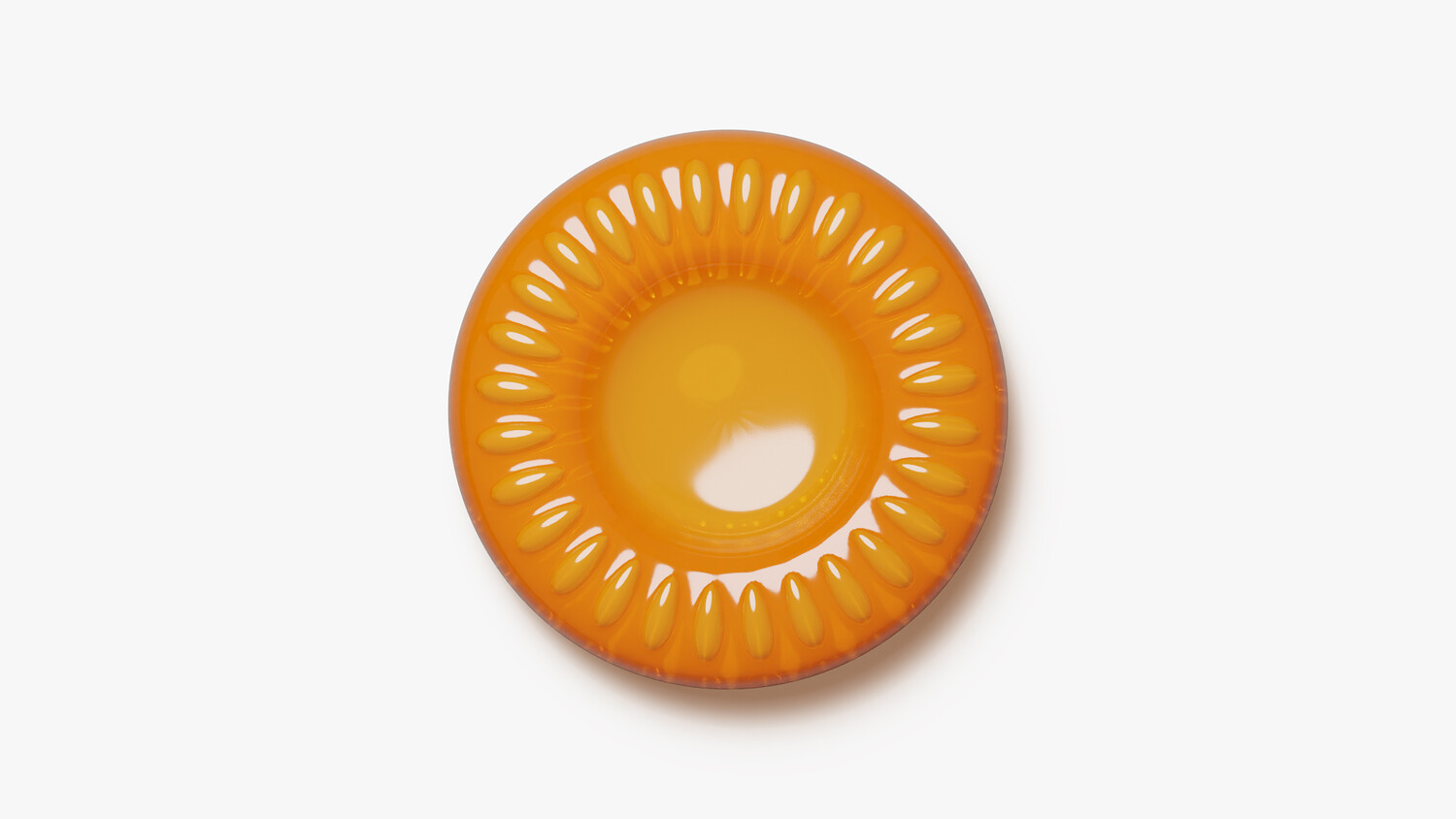 This 3D caramel candy set is crafted in a glossy cartoon style, showcasing bright shapes with a playful and appetizing look. The set includes three variations: a pink-and-white swirled caramel, a translucent yellow slice-shaped candy, and a round orange caramel with detailed inner texture. Each piece is designed with smooth glossy surfaces, soft edges, and vibrant tones, giving the candies a delicious and attractive appearance.
