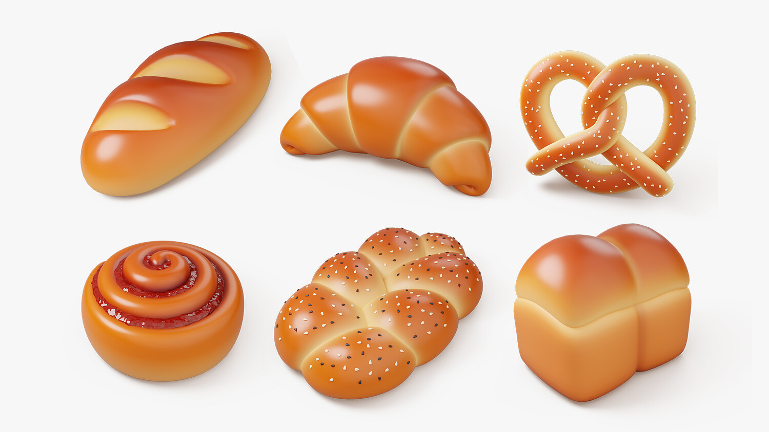Bakery Bread and Bun 3D Icon Set
