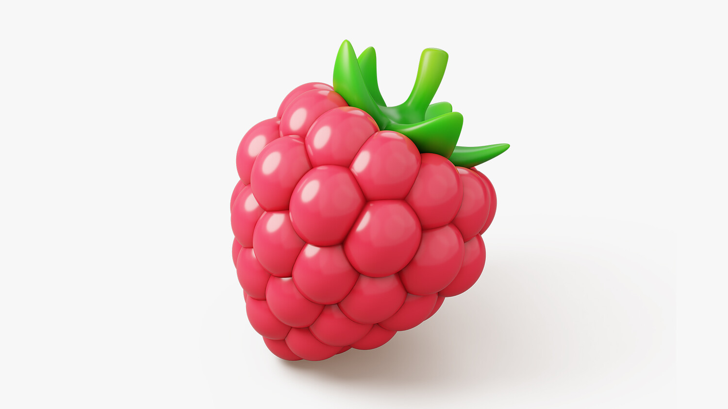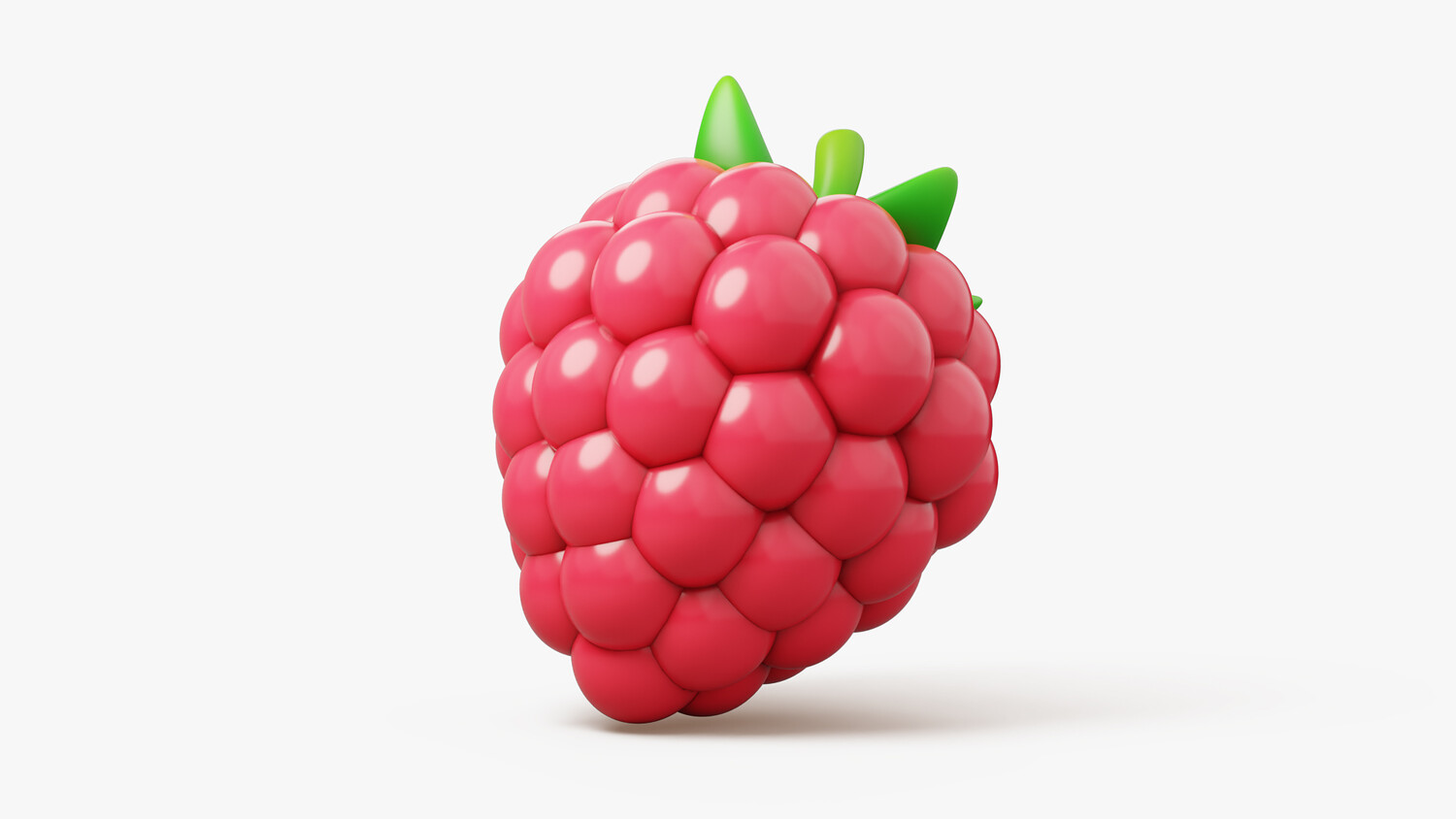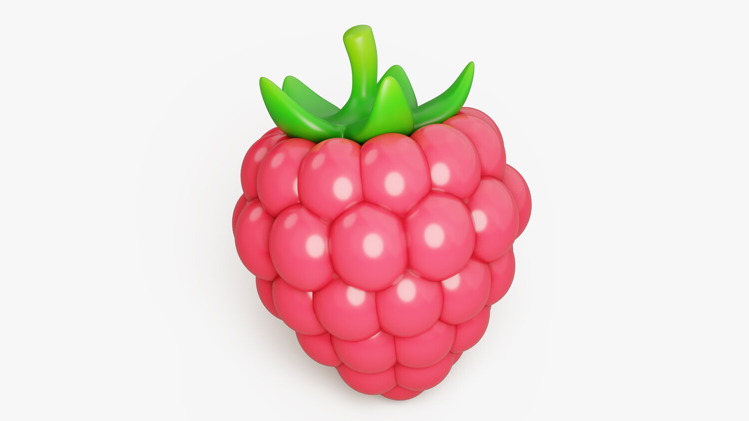 A cute and stylized 3D model of a juicy raspberry with a glossy, vibrant appearance. This colorful red berry features a charming cartoon style and includes a detailed leaf for a natural touch. Designed for illustrations, icons, and artistic projects, it adds a sweet and delicious element to any composition. Available in Blender (.blend), FBX, and OBJ formats, this model is perfect for food visualizations, creative artwork, and vibrant designs.