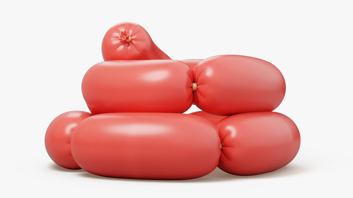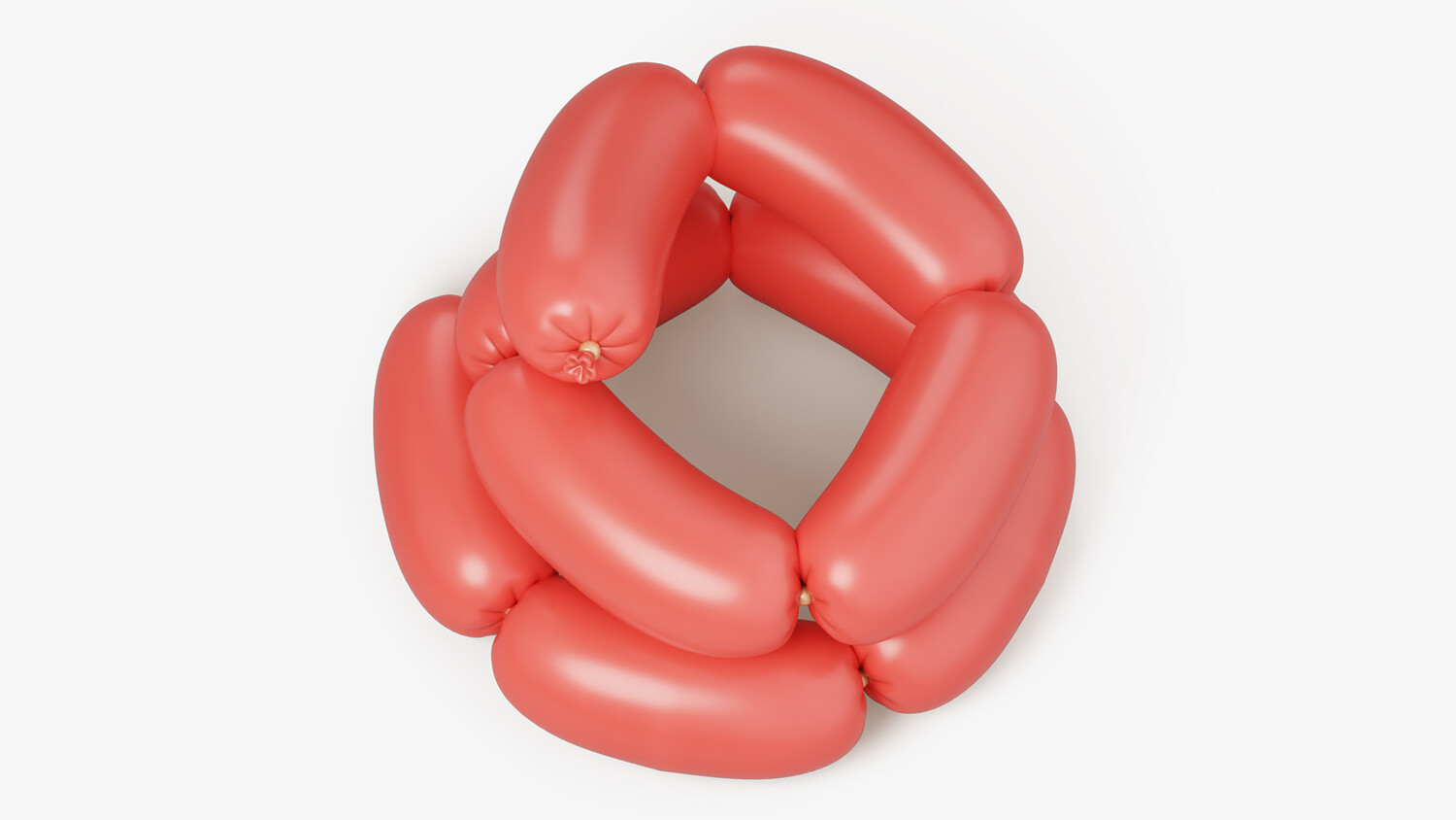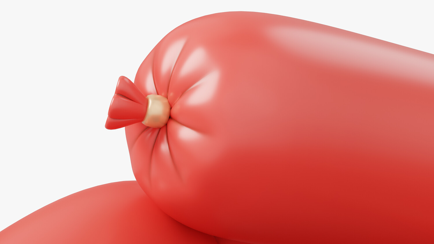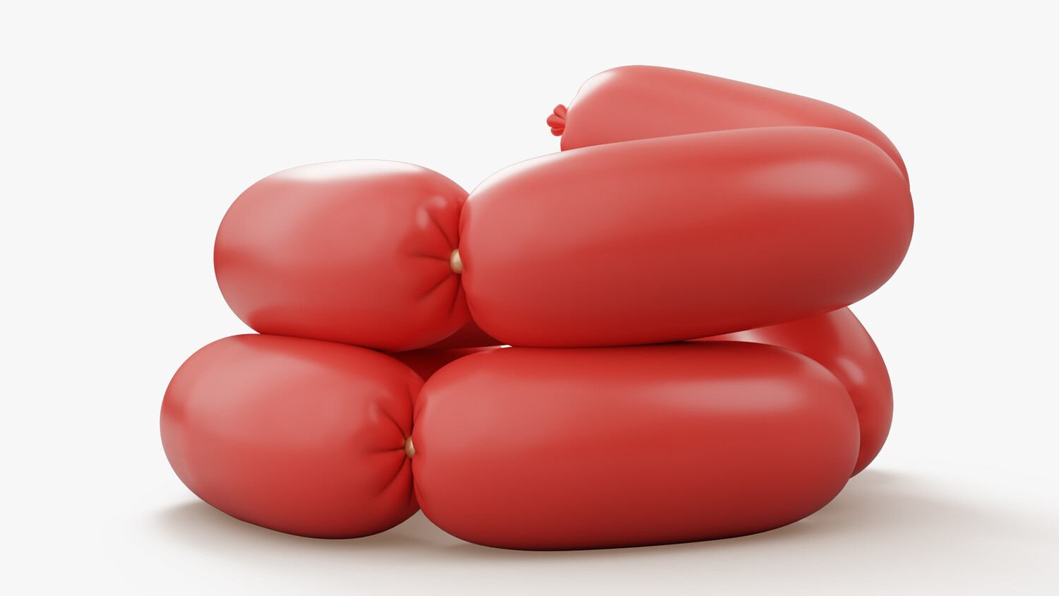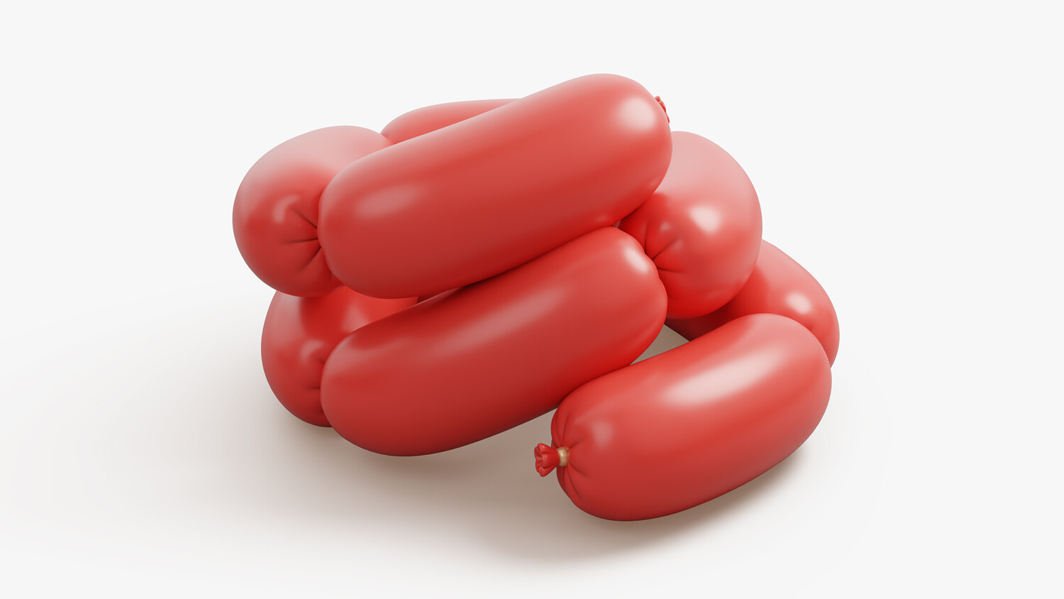 High-quality 3D model of stylized sausages in a traditional string arrangement. Perfect for use in food visualizations, cooking games, butcher shop scenes, grocery illustrations, or farm-themed environments. Designed in a cartoon style with glossy, smooth shapes.