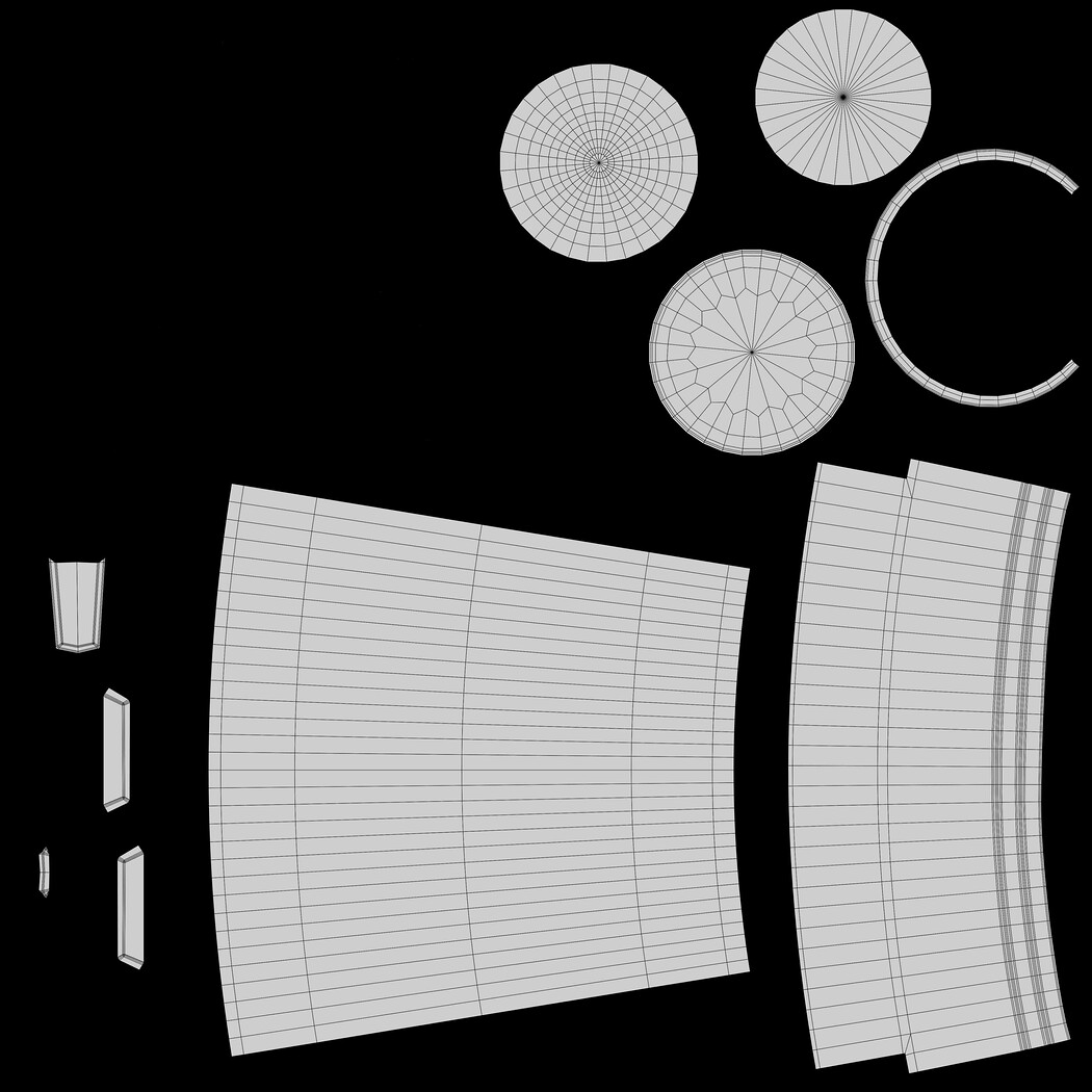 Textures: 1 color map, 1 roughness, 1 metalness.
