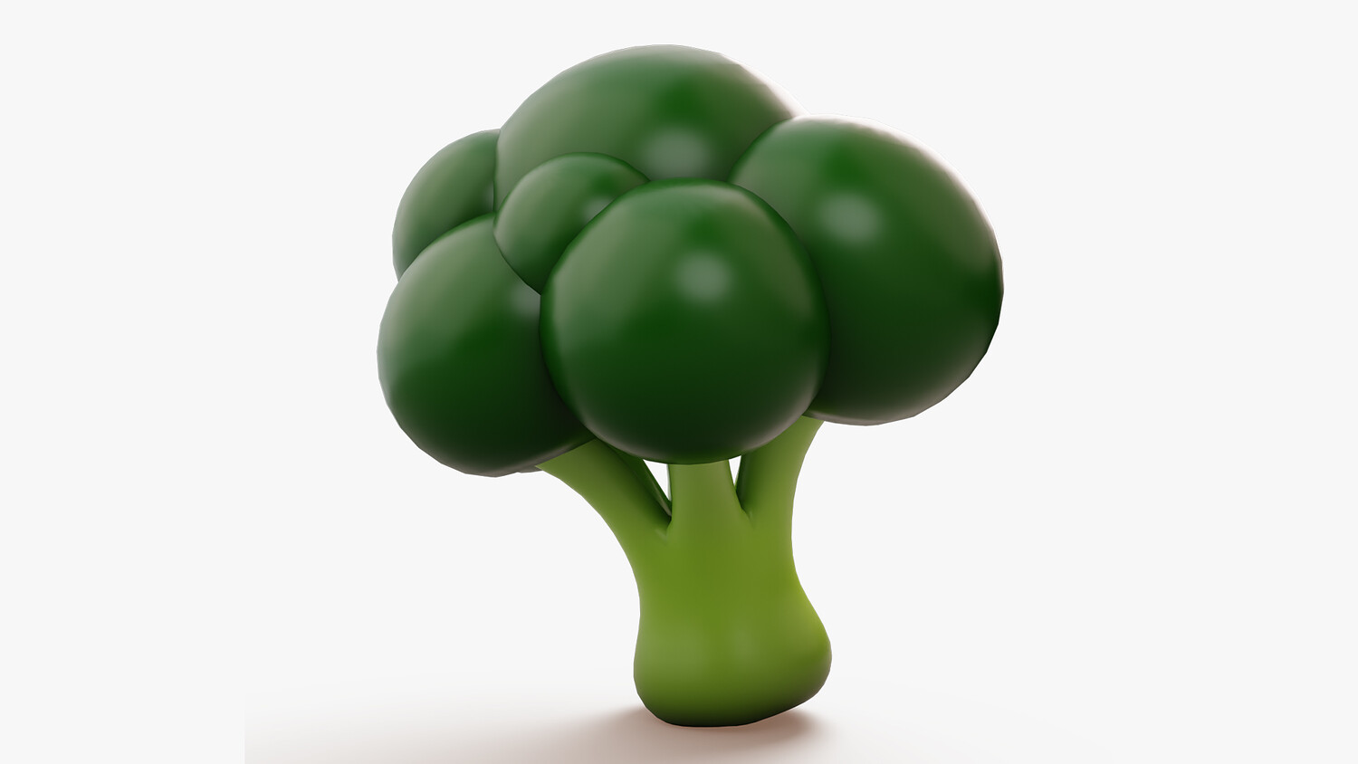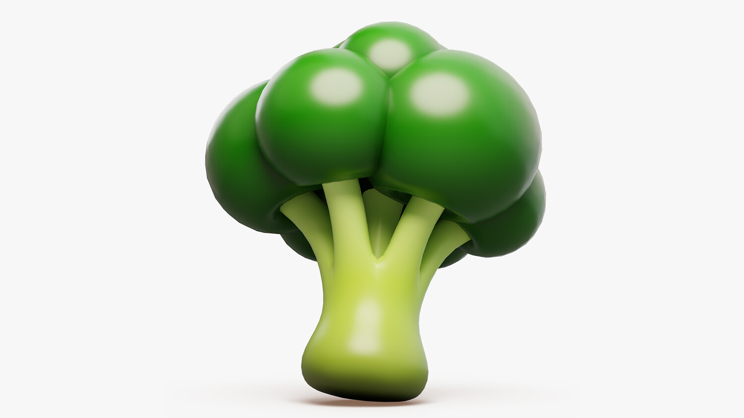 This is a stylized 3D broccoli model created in a cute and cartoonish style, featuring smooth green florets and a glossy finish. The model is ideal for use in mobile games, food illustrations, educational content, farm scenes, or healthy lifestyle projects. It has a clean shape, appealing colors, and works great in any stylized or casual environment.