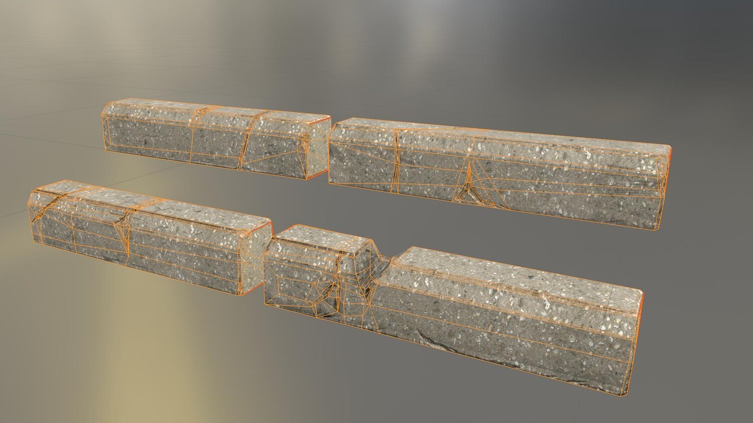 3d model, blender, curbstone, border stone, kerb, asphalt, concrete, urban, road,