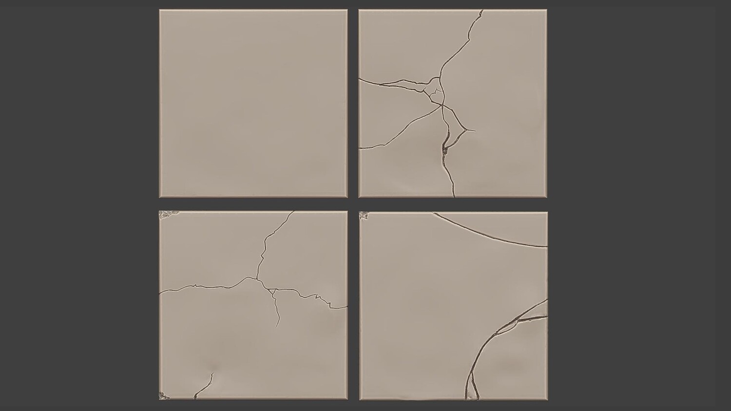 this file includes 1 solid tile, 3 cracked tiles and grout.