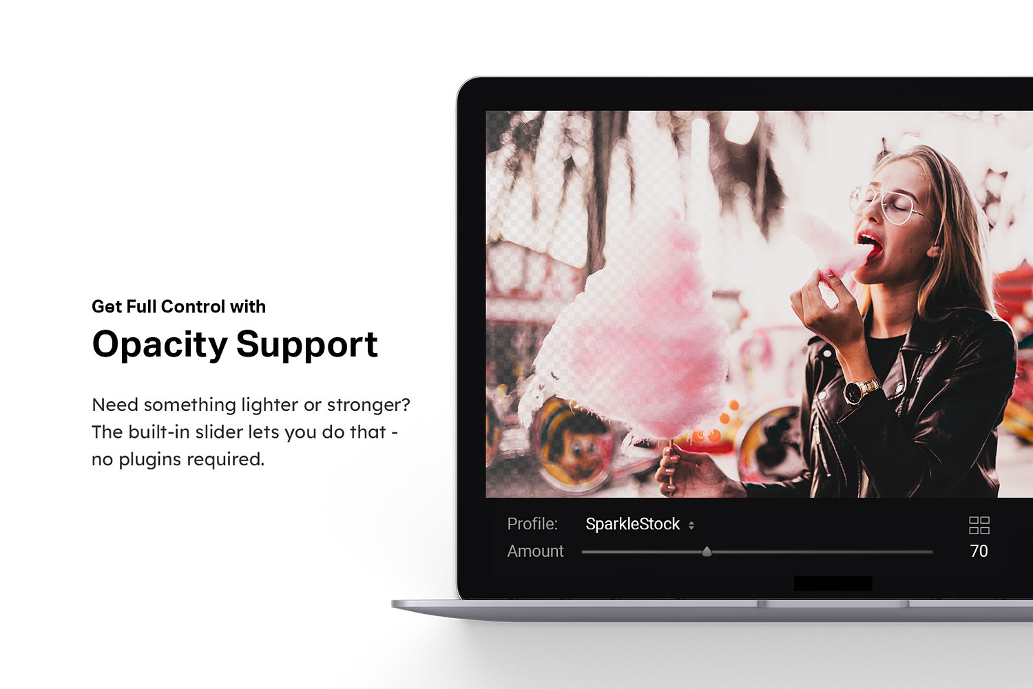 ✔️ Fine-tune the preset strength with the built-in opacity slider