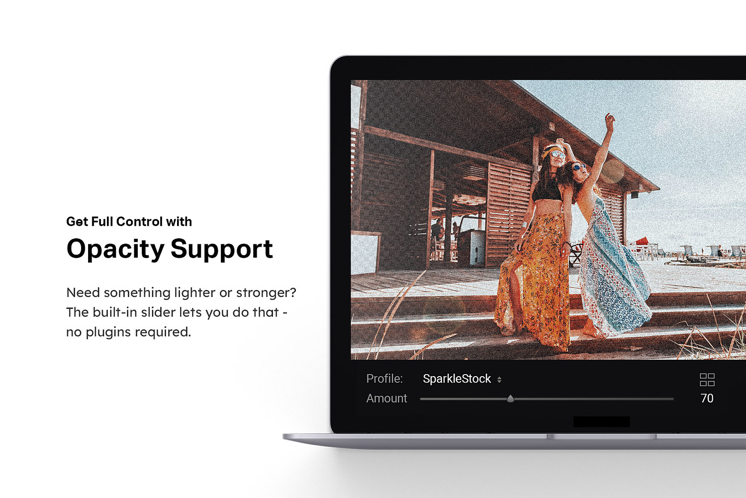 ✔️ Fine-tune the preset strength with the built-in opacity slider
